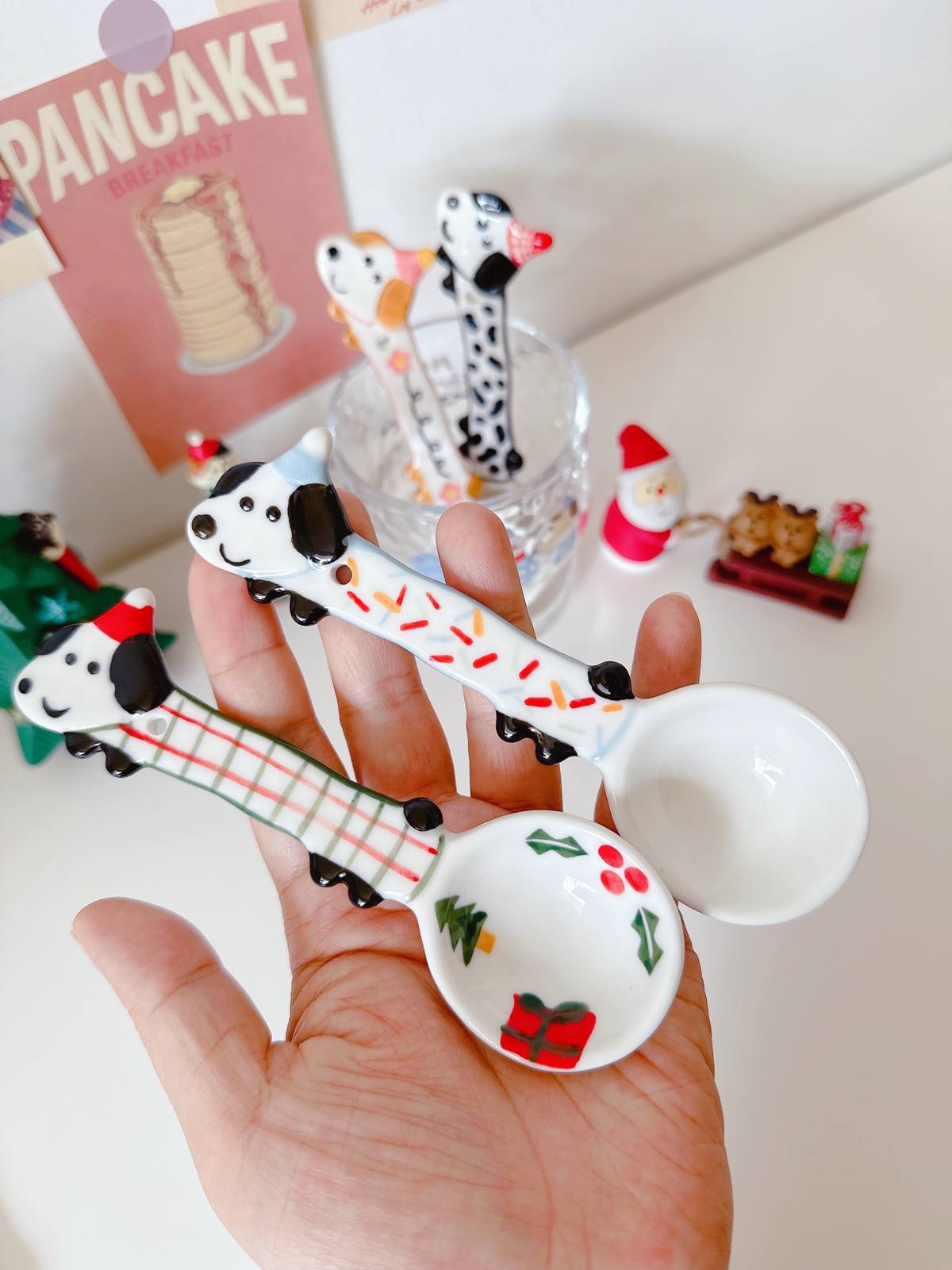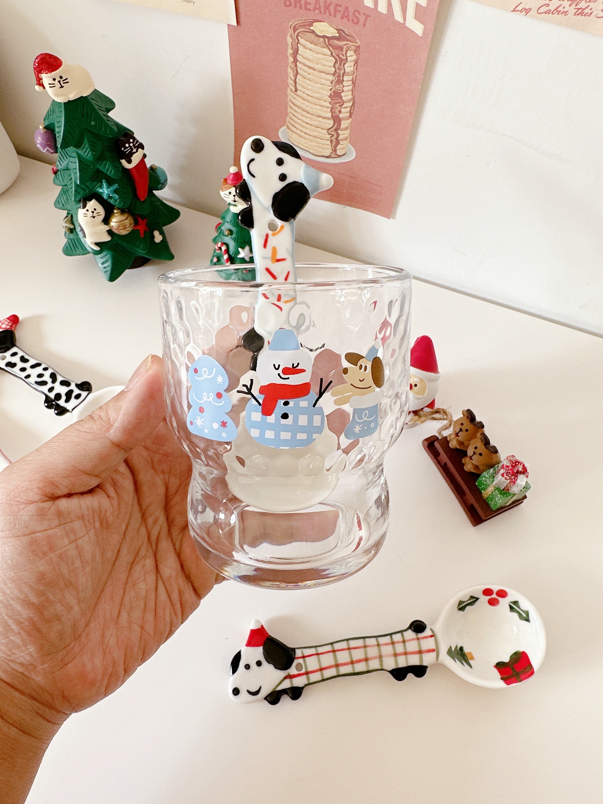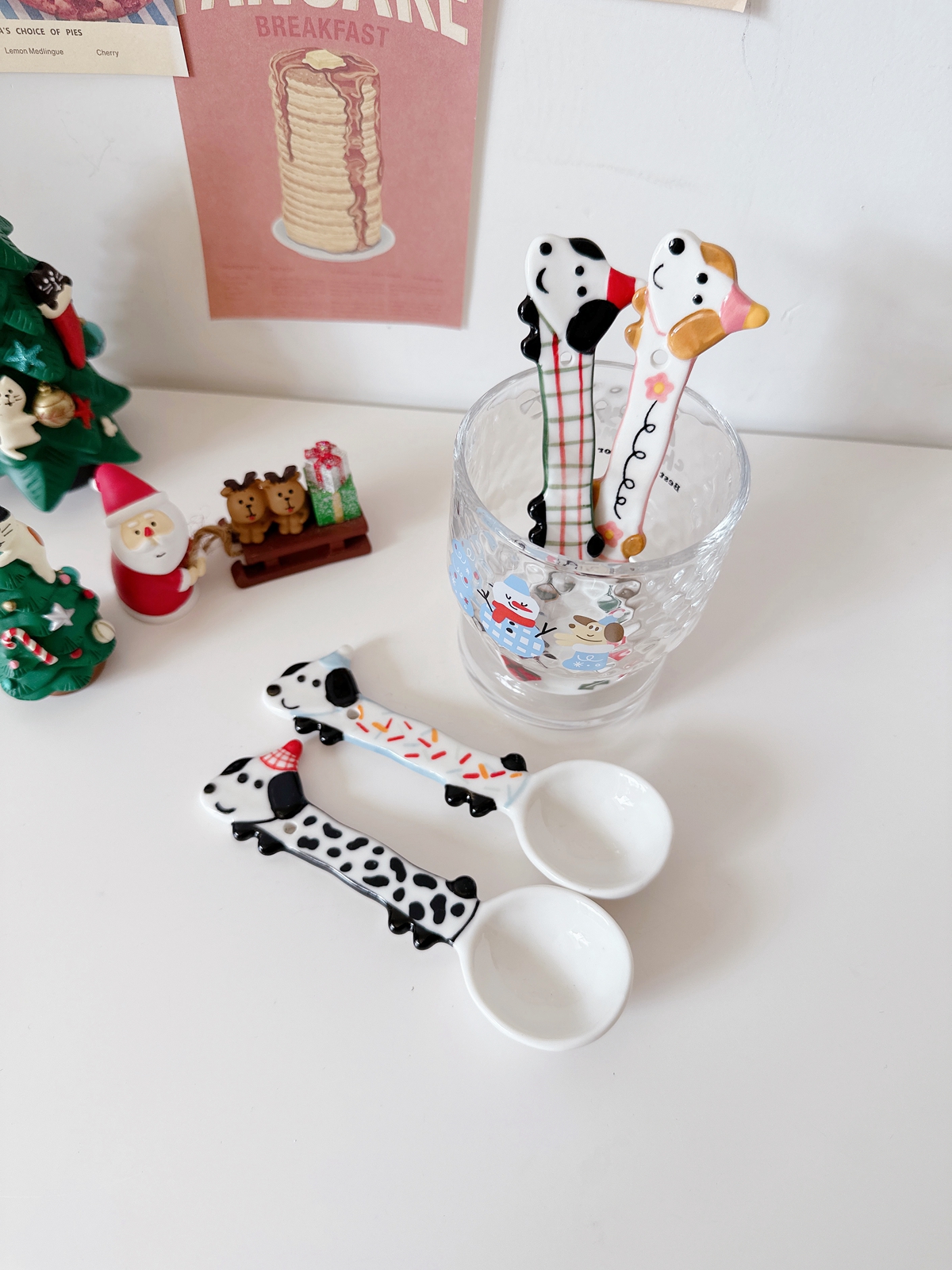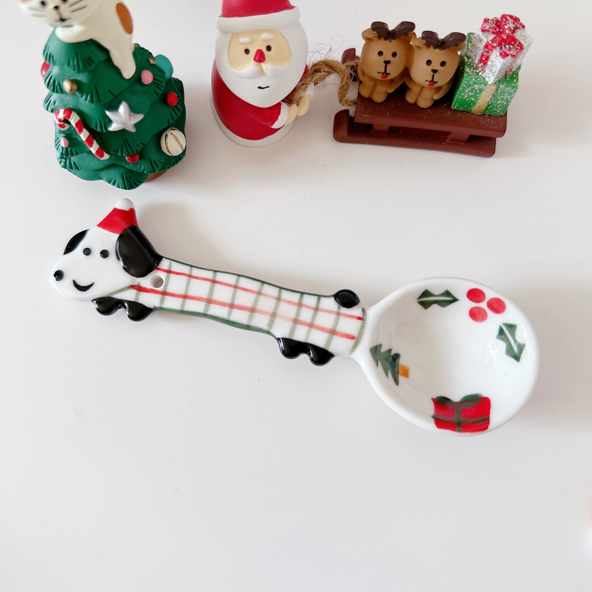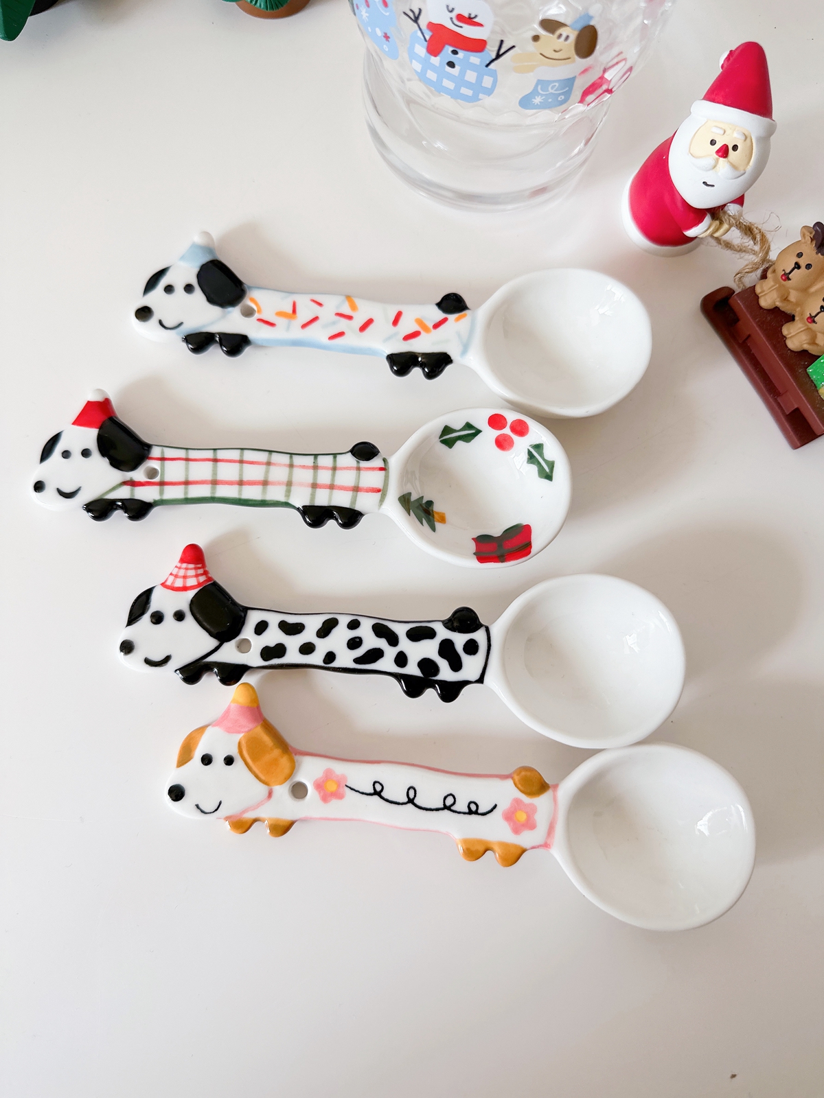 Color classification: Puppy spoon/red and green Christmas style, puppy spoon/blue edge birthday, puppy spoon/black and white dots, puppy spoon/pink flower style