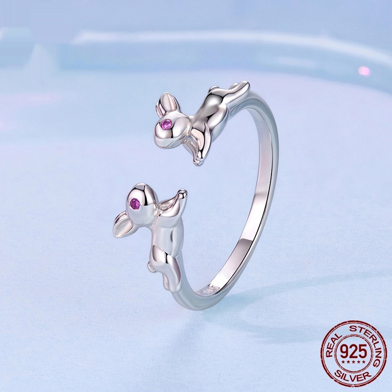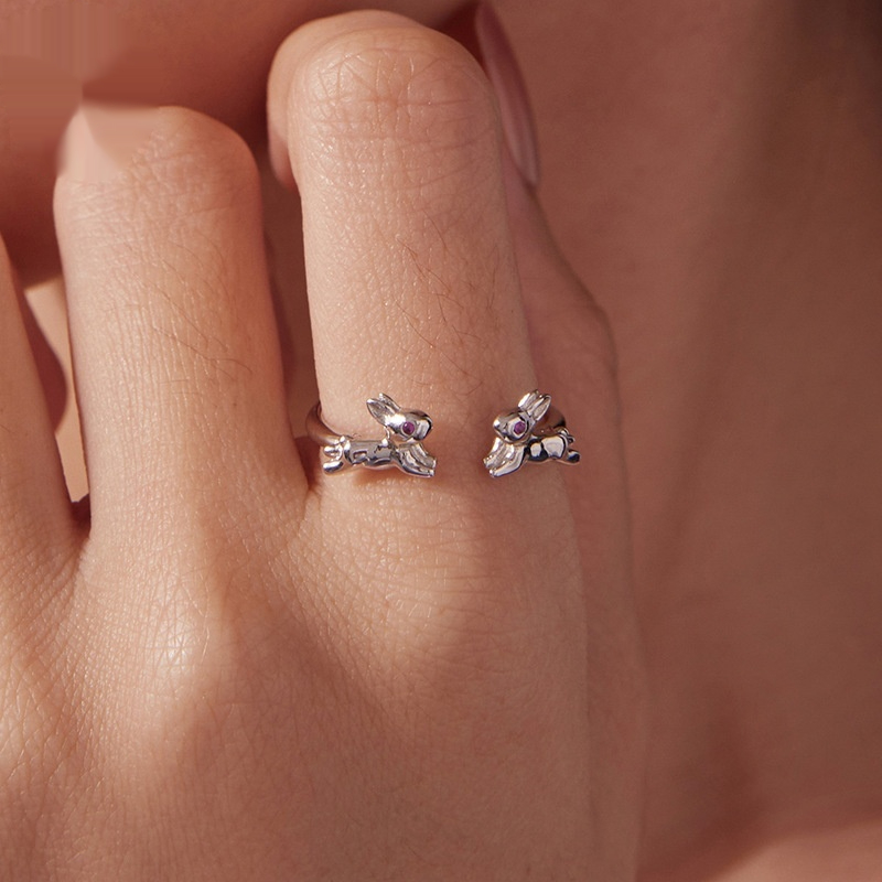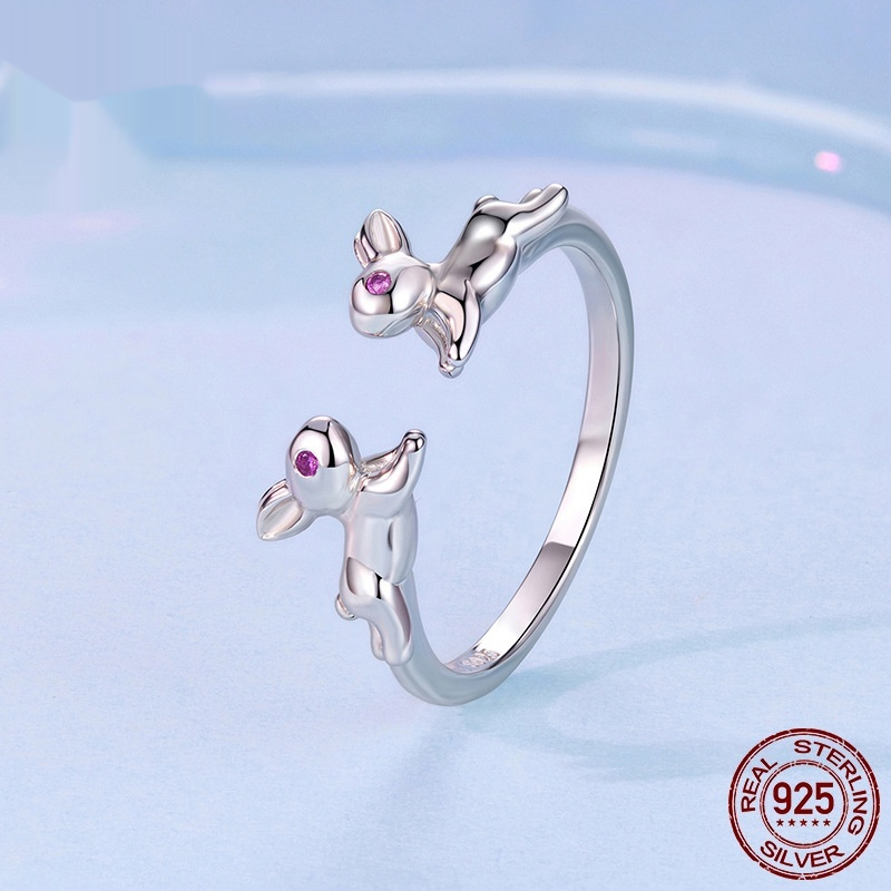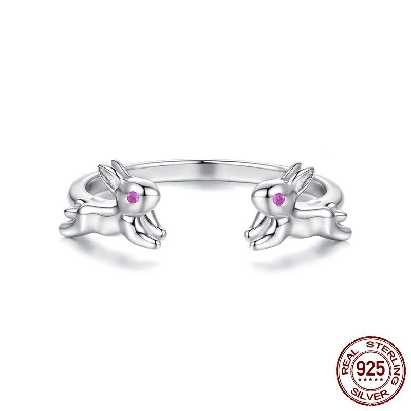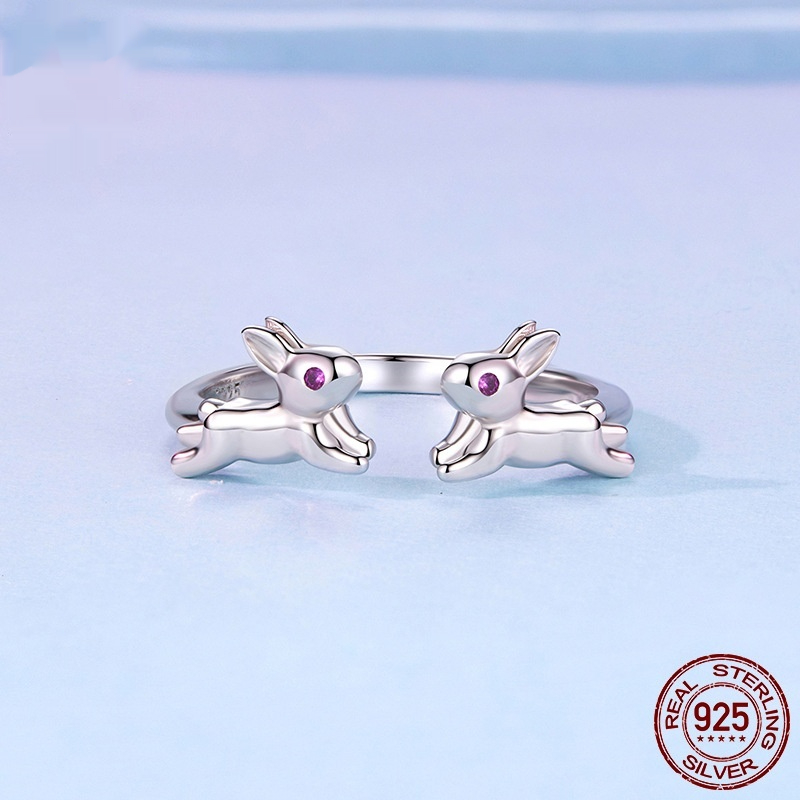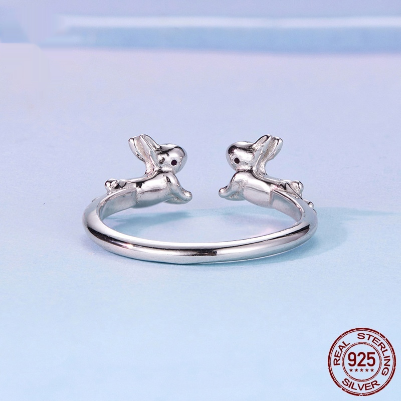 Cute Rabbit Open-Adjustable S925 Sterling Silver Ring