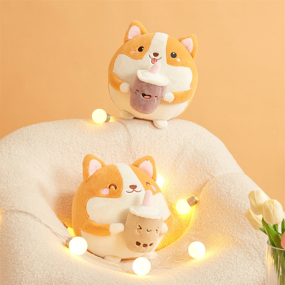 Cute Round Corgi Doll Milk Tea Shiba Inu Plush Doll