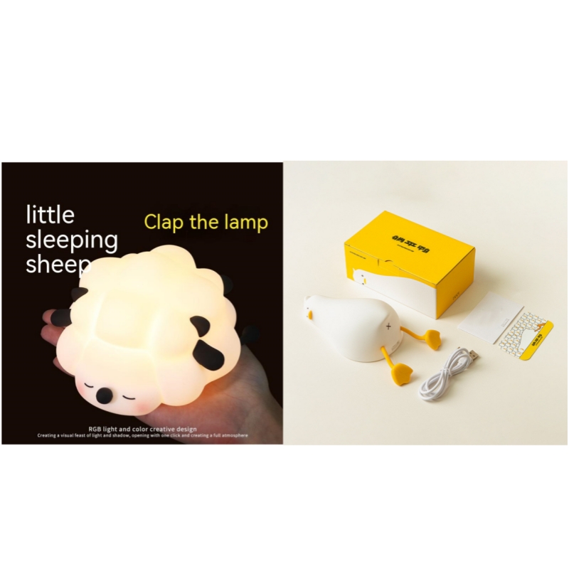 Cute Silicone Night Lights Sheep Cartoon Bedroom Lamp For Children's Room Decor Rechargeable Timing Dimming Sleep Night Light