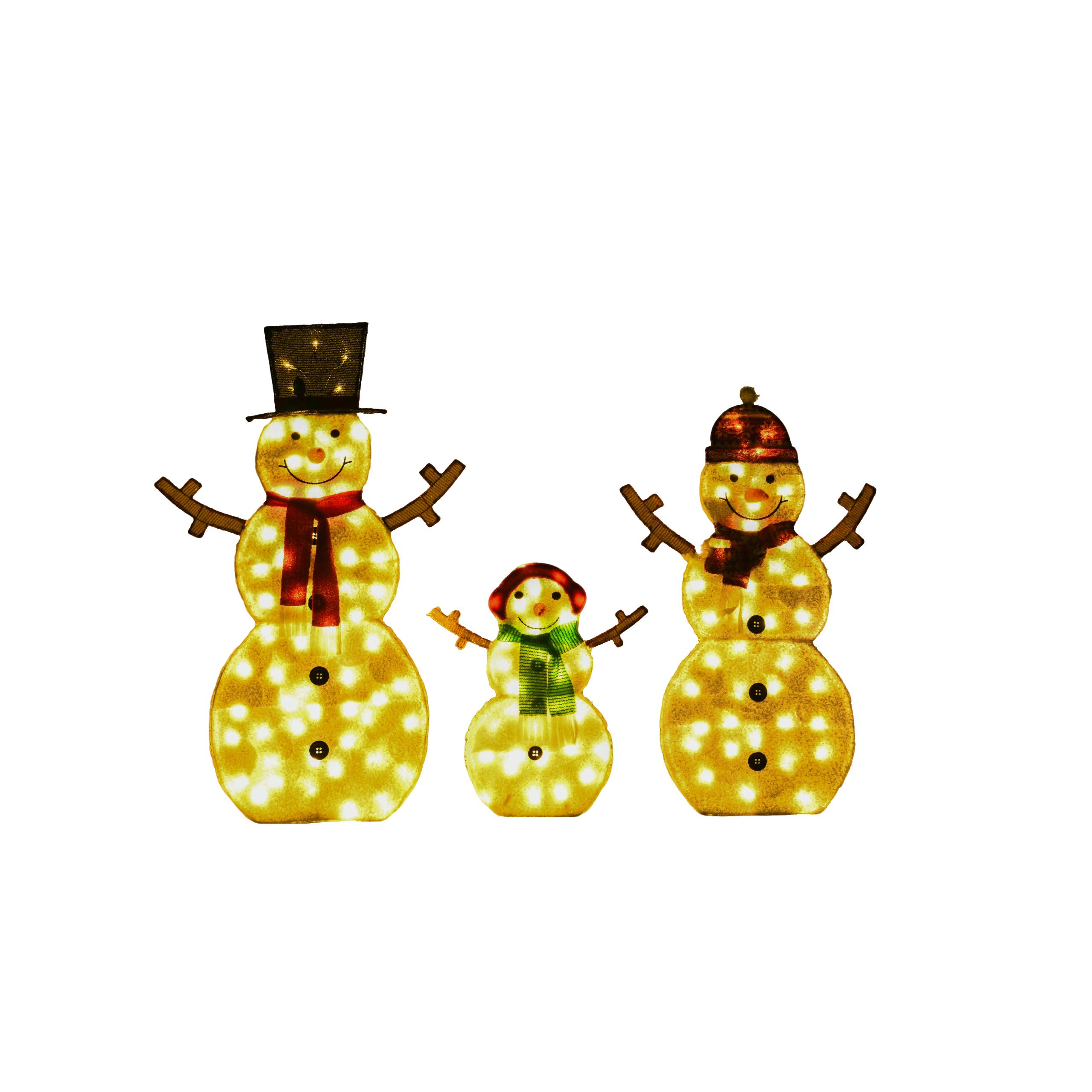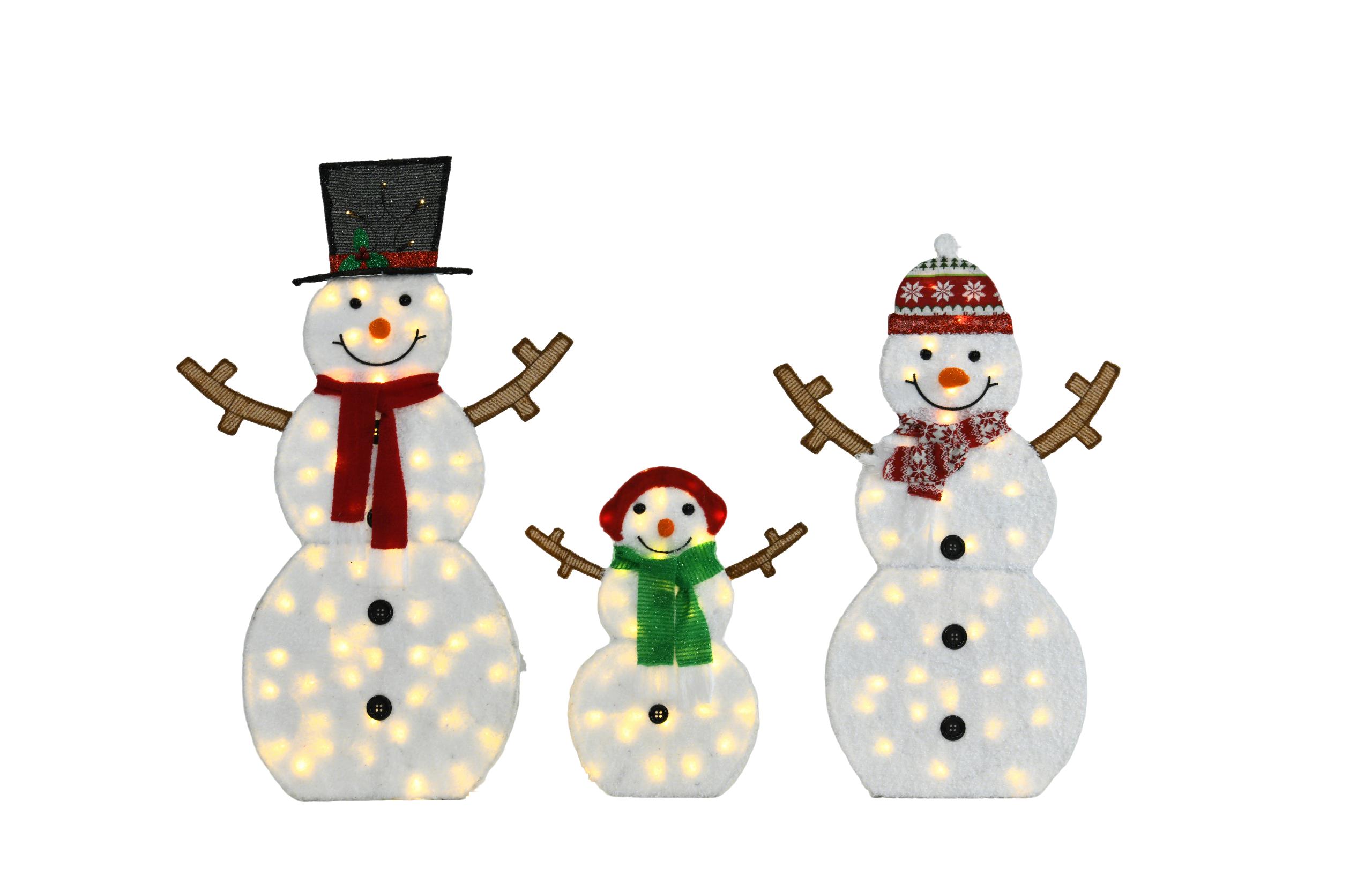 Amazing Holiday Display: Use our snowman holiday decorations to create a whimsical winter wonderland in your home or yard. Excellent Lighting: Each snowman is adorned with UL-listed warm LED lights, emitting a cozy glow that enhances your holiday atmosphere and makes your decorations stand out. Durable Material Construction: Crafted from high-quality materials, these snowmen are designed to withstand winter weather, ensuring your holiday decorations remain beautiful season after season. Easy to Set Up & Use: Featuring a convenient 1. 5-meter plug-in cord, these snowmen are simple to set up. Just plug them in and enjoy the festive sparkle without hassle.Satisfaction Guaranteed: We take pride in providing top-notch customer service.