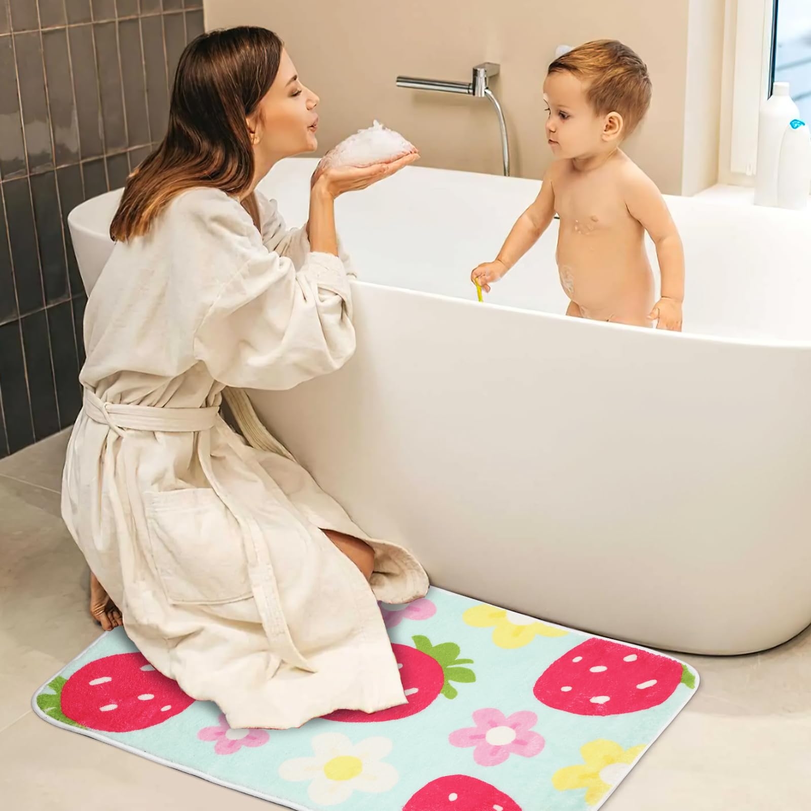 The strawberry bath mat is designed with strawberries and flowers, with bright colors and vivid patterns, adding a touch of nature and vitality to your bathroom. Every time you step into the bathroom, you feel like you are in a spring garden, which makes the bathing time more pleasant