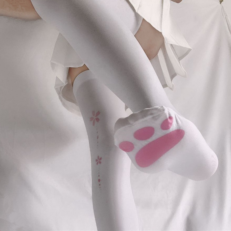 O: White common cat paw socks spring style