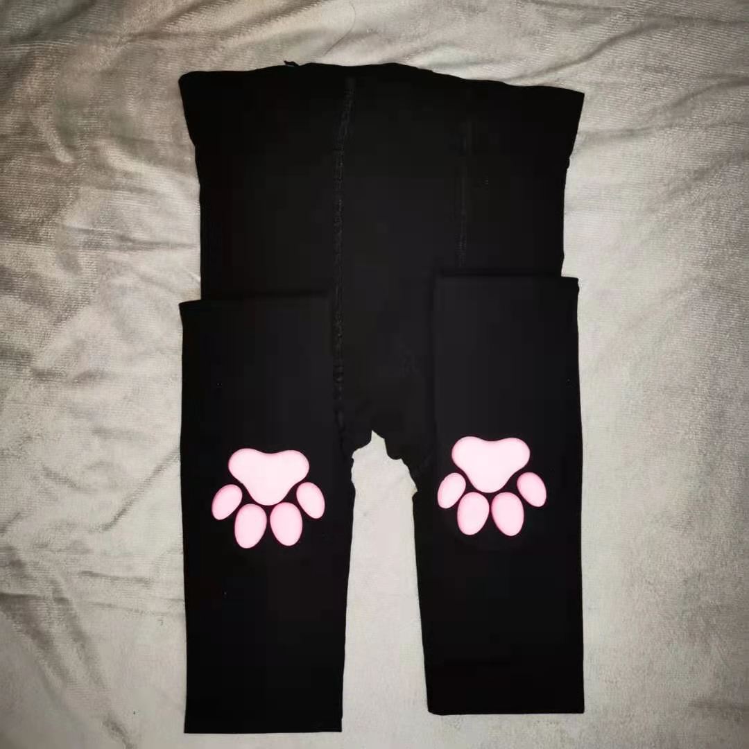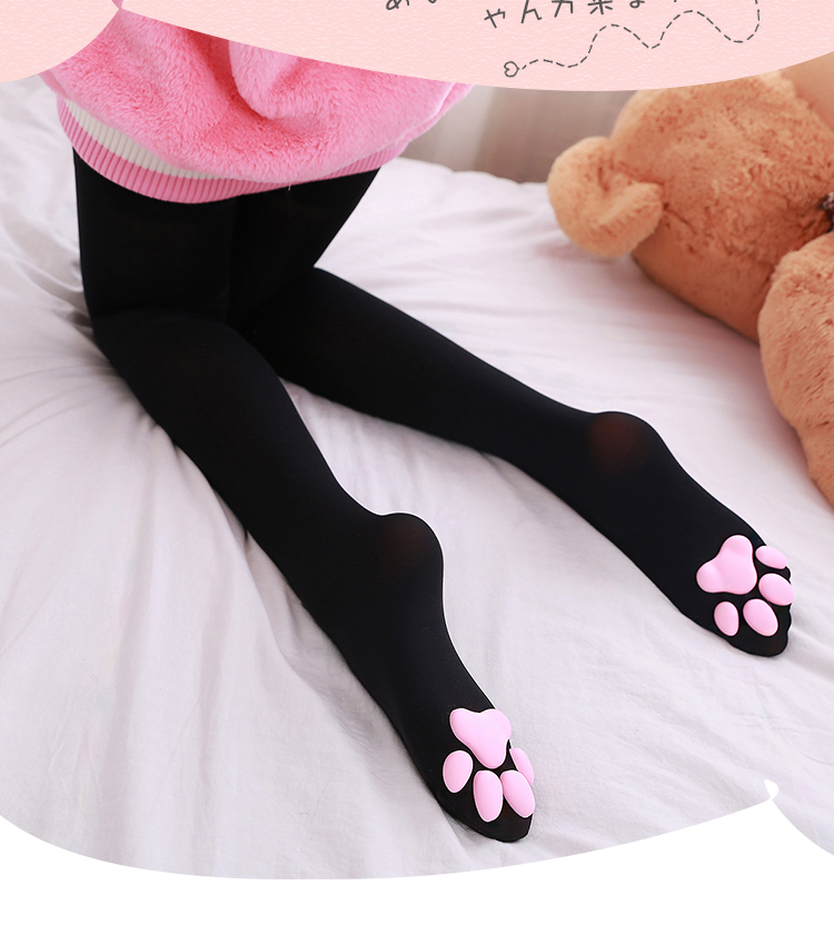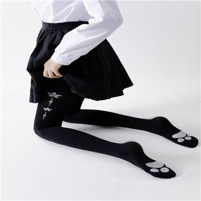 R: black regular cat paw socks panty black