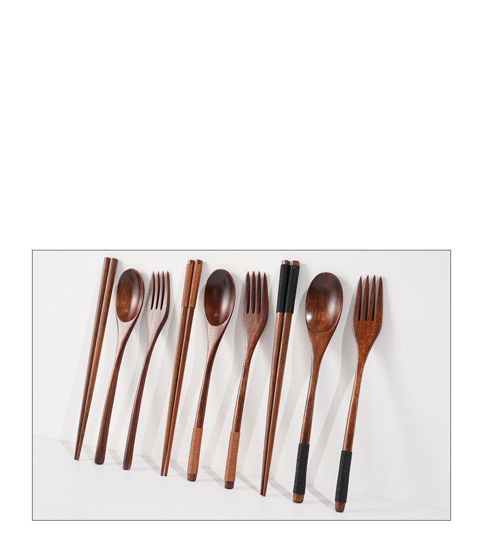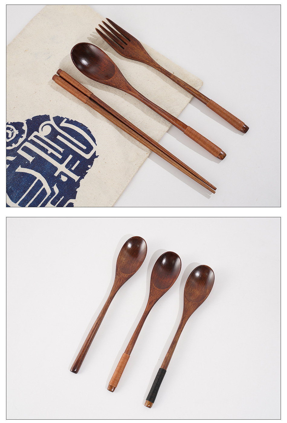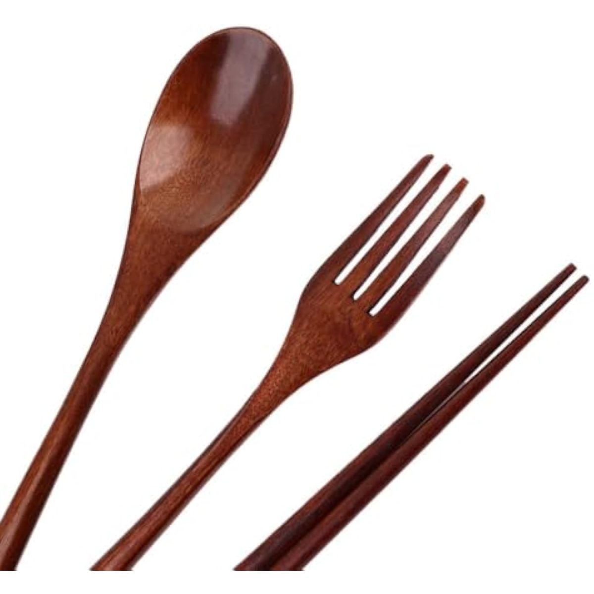 1 set of wooden tableware, including 1 fork, 1 spoon, 1 pair of chopsticks. Perfect for camping, travel, work, hiking, picnics, and any other outdoor activities. It is also perfect for offices, kitchens, restaurants, hotels, friends dining, and more.