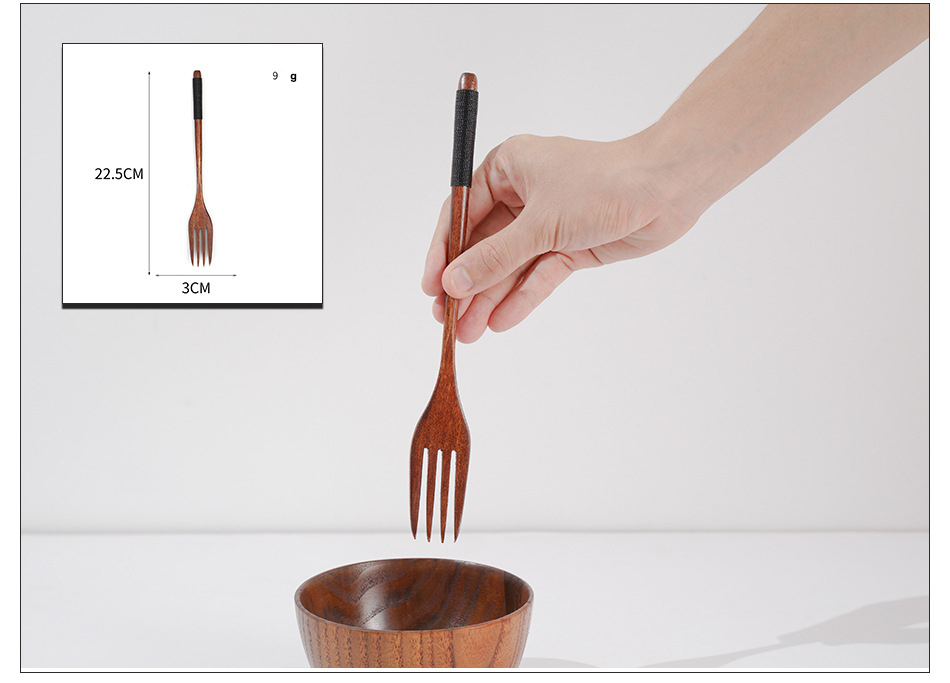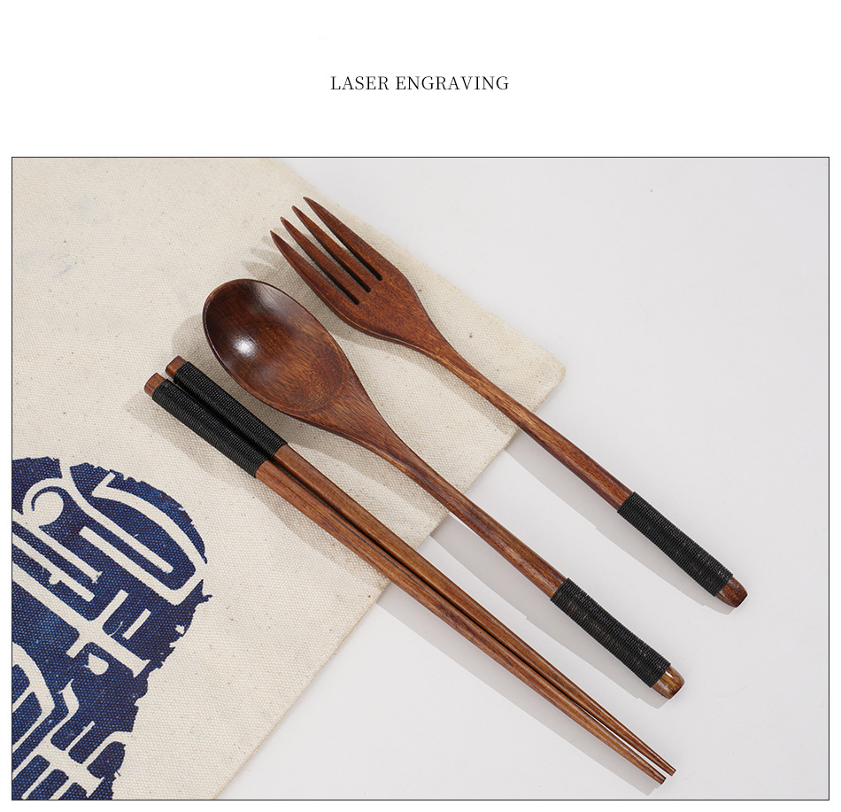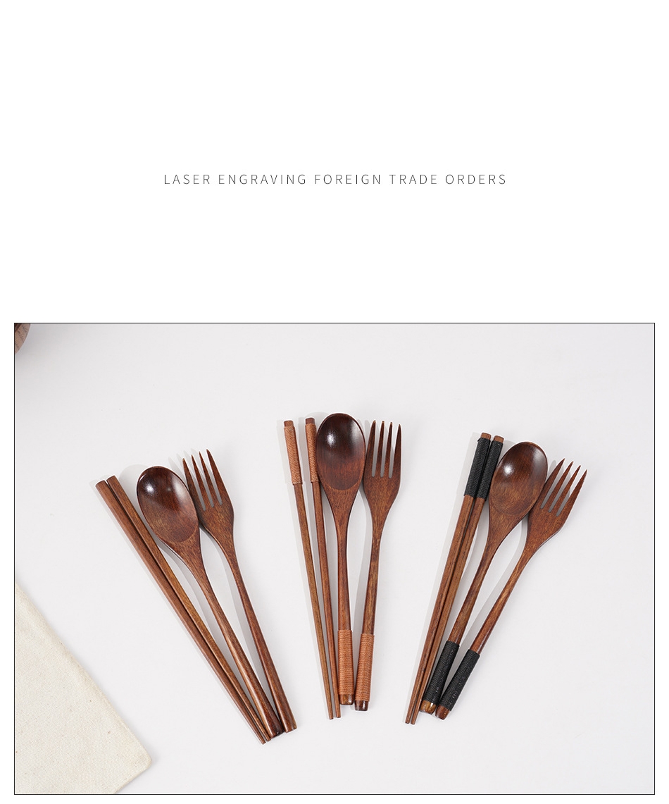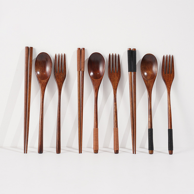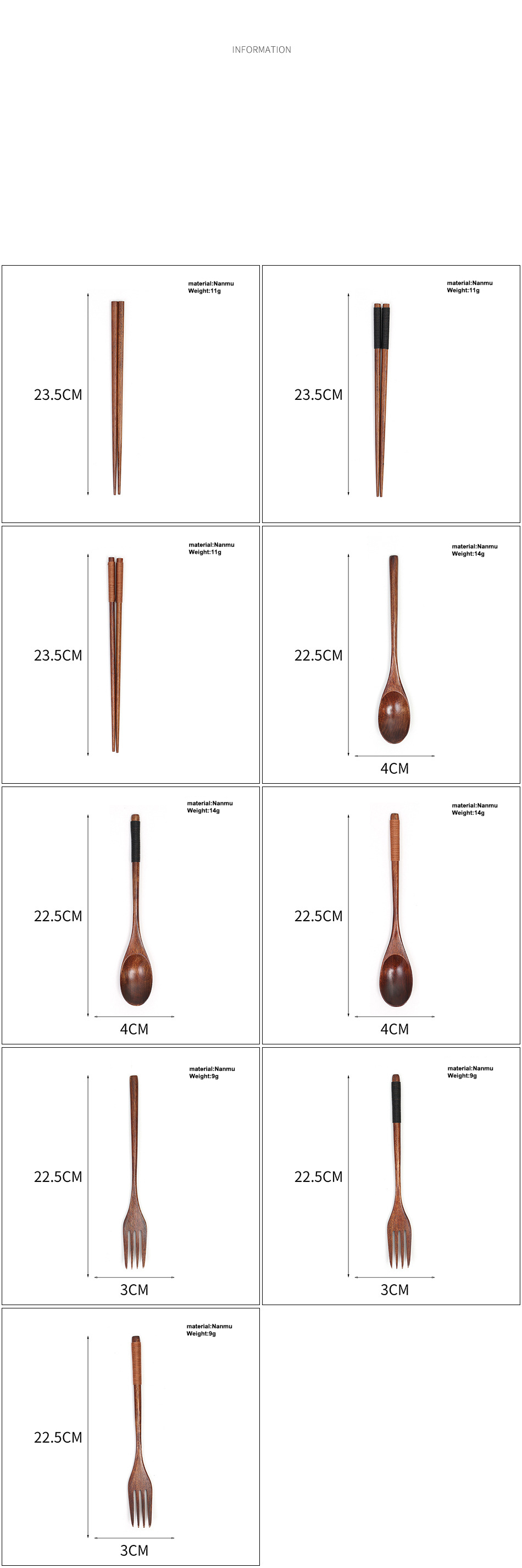 1 set of wooden tableware, including 1 fork, 1 spoon, 1 pair of chopsticks. Perfect for camping, travel, work, hiking, picnics, and any other outdoor activities. It is also perfect for offices, kitchens, restaurants, hotels, friends dining, and more.