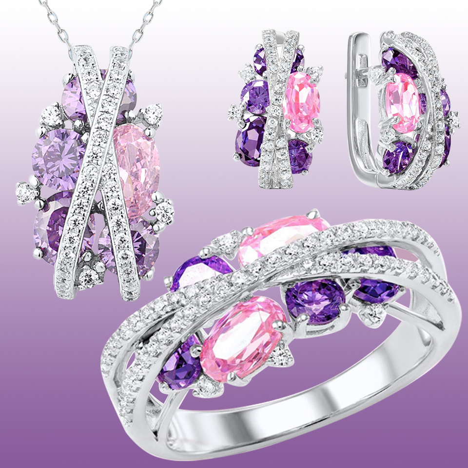Style: earrings, necklaces, rings, 3 pieces se