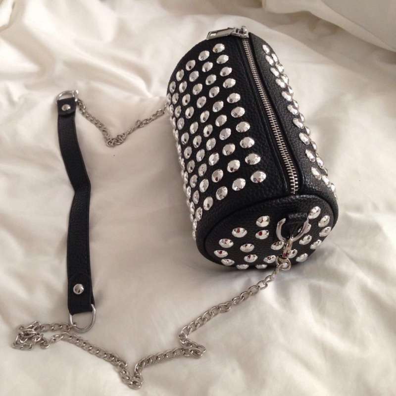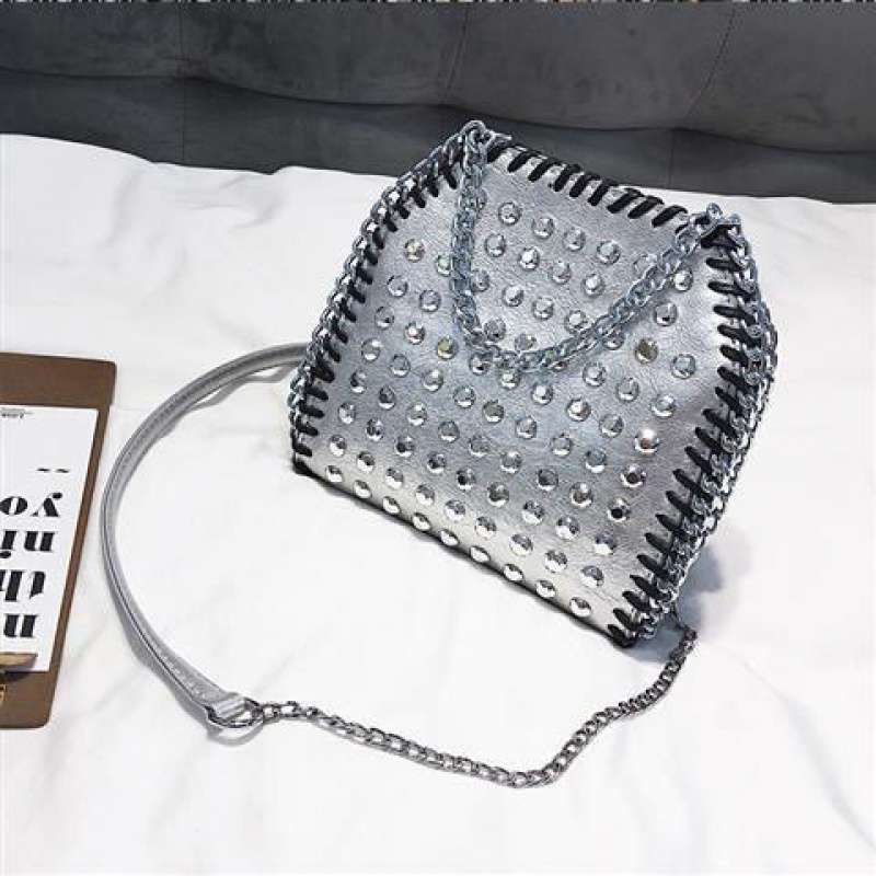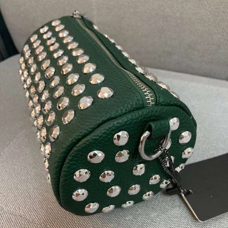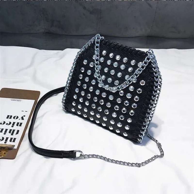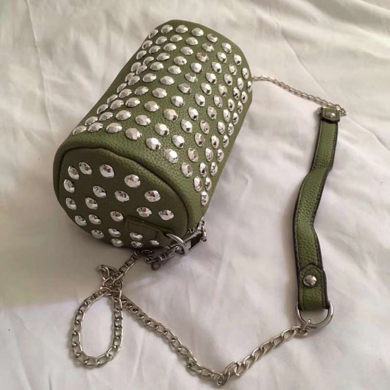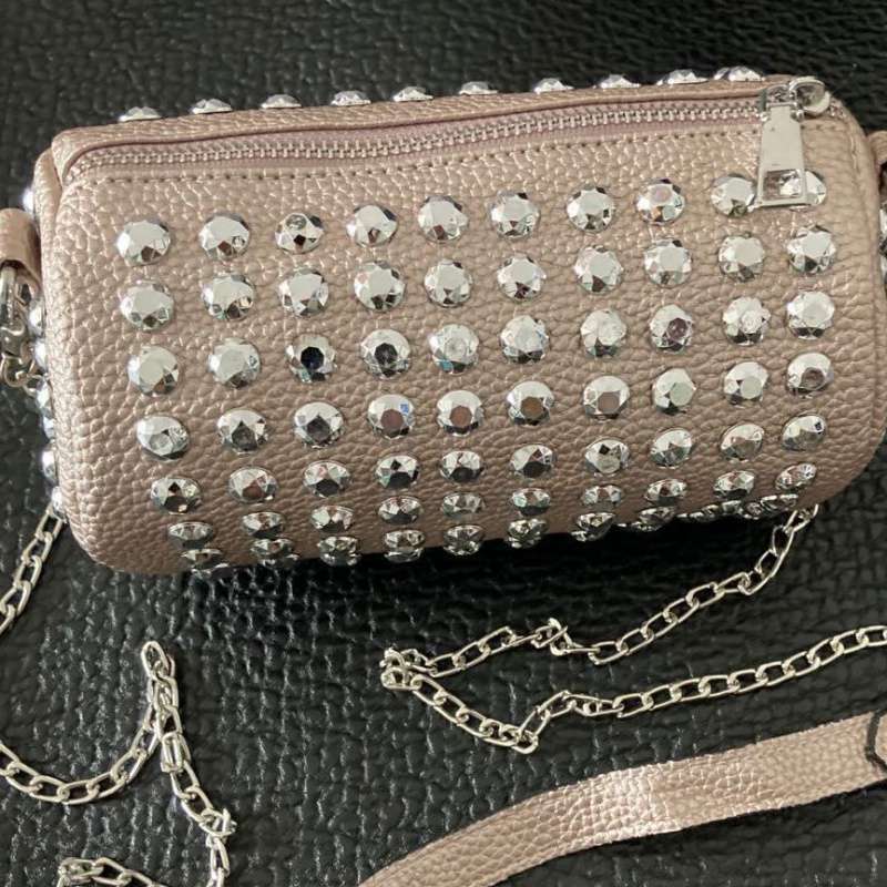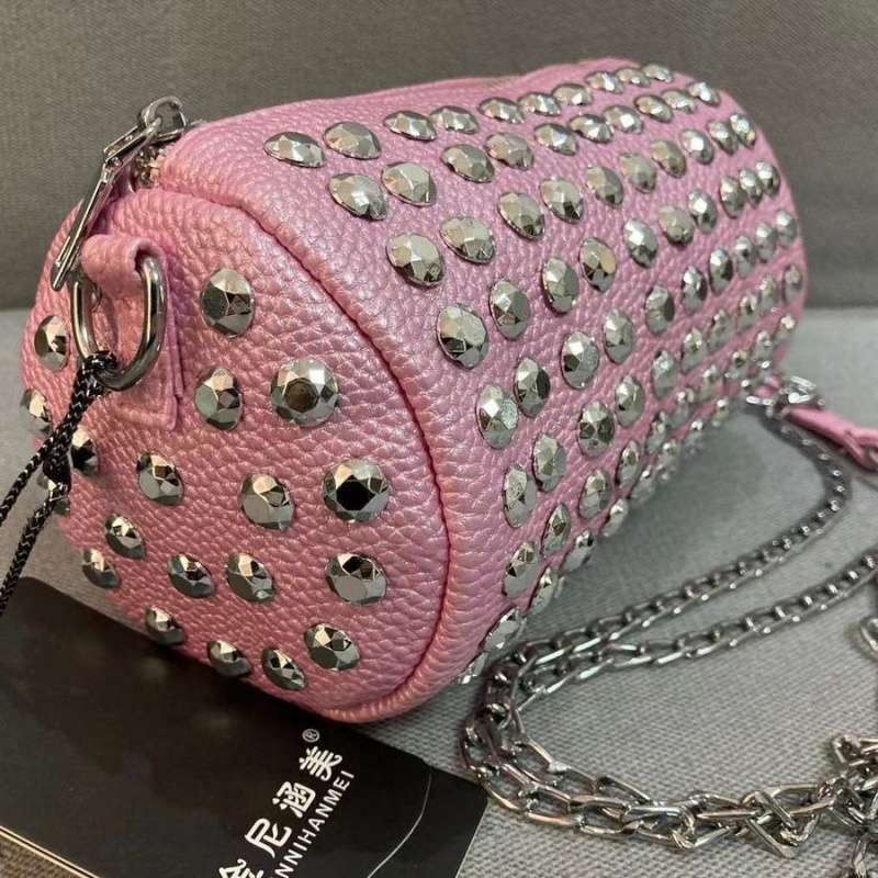 Cylindrical Small Bag Rivet Chain Messenger Bag Female Bag Diamond Mobile Phone Bag