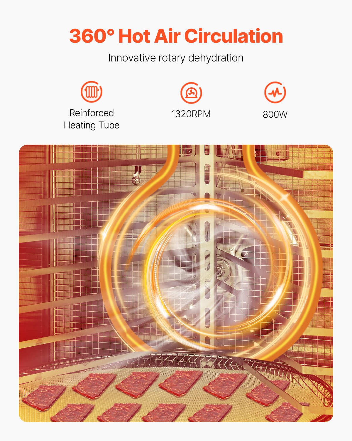 VEVOR Dörrgerät Dörrautomat 12 Edelstahlschalen, elektrischer 800 W Futtertrockner mit einstellbarer Temperatur, Gefriertrockner für Trockenfleisch Fleisch Obst Gemüse Kräuter Hundeleckerlis