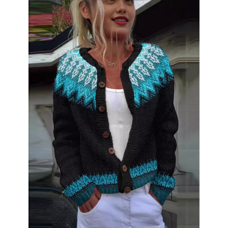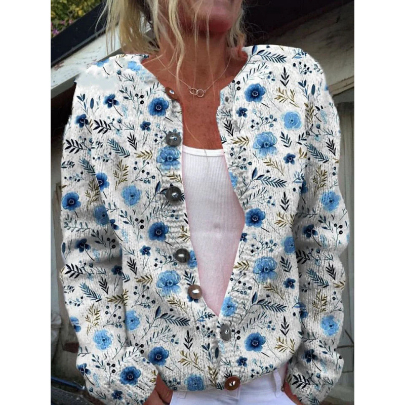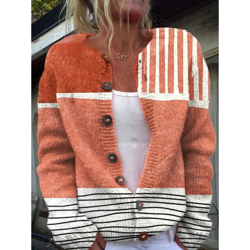 D Digital Printing Cardigan Knitted Coat Women's Early Spring And Autumn Coat