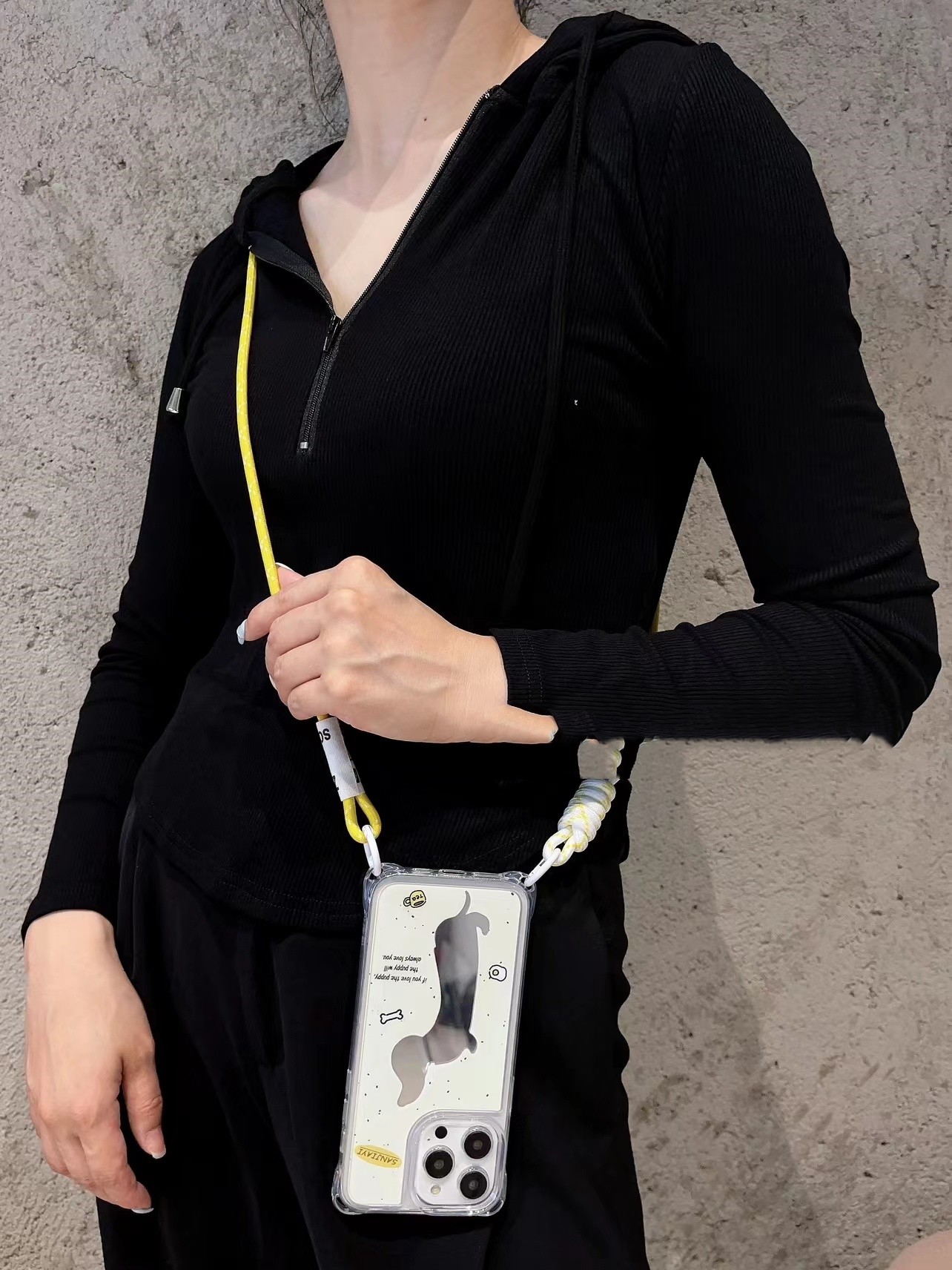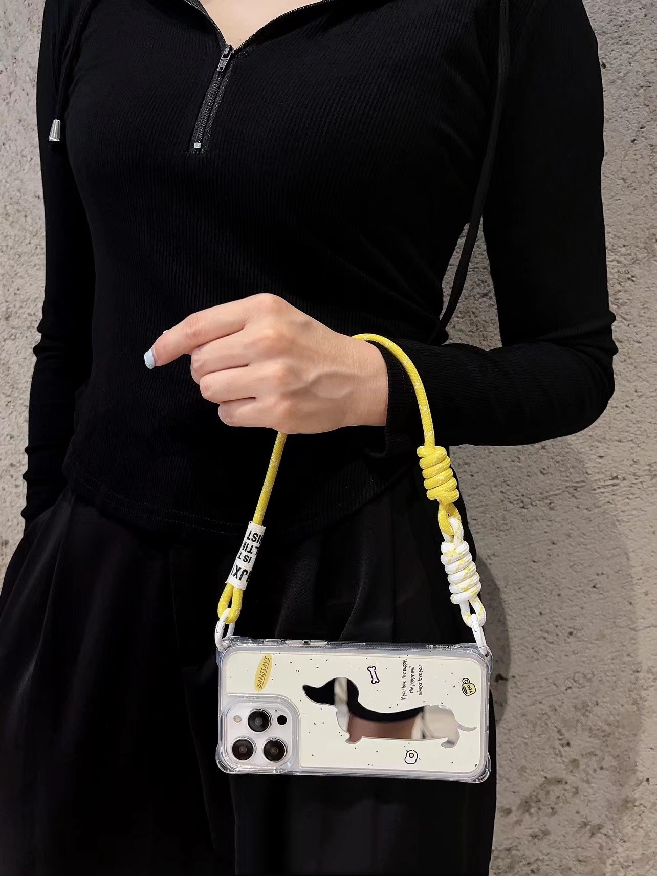 Popular elements: wrist strap/crossbody lanyard