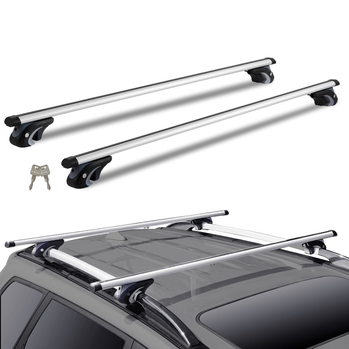 Dachträger Universal Dachgepäckträger Auto Alu Querträger 90 Kg Tragkraft, Für Erhöhte Seitenschiene Mit Lücke, Passend Innenabstand Des Dachbalkens 19-113cm, Rohrdurchmesser 28-68 Mm