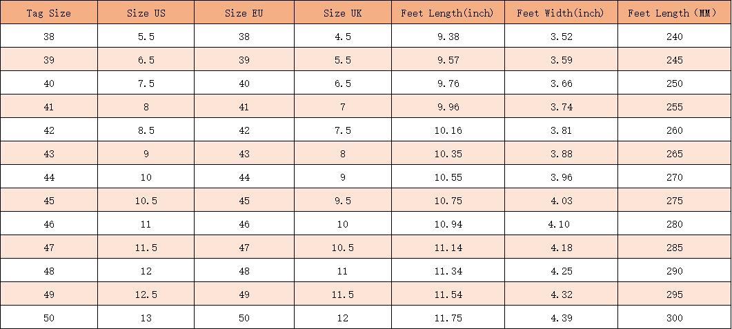 Size: 35, 36, 37, 38, 39, 40, 41, 42, 43, 44, 45, 46, 47, 48