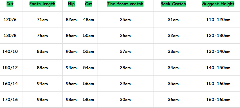 Size: 120cm, 130cm, 140cm, 150cm, 160cm, 170cm