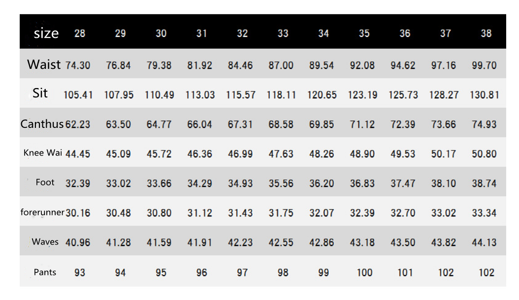 Sizes:28, 29, 30, 31, 32, 33, 34, 36, 38