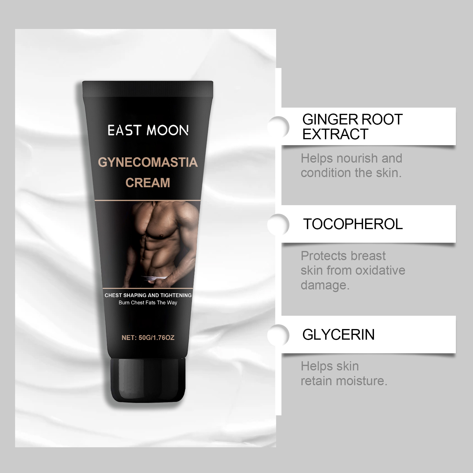 Product information:Ingredients: Ginger Root Extract, Tocopherol and Glycerol.Packing list:Chest fat burning cream *1