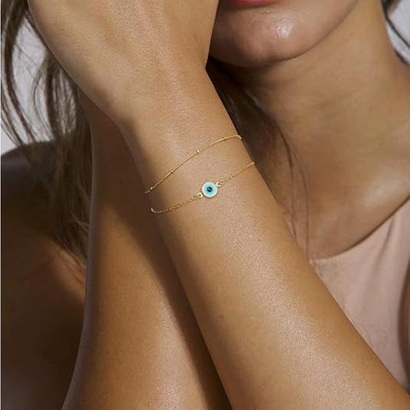 1.MATERIAL: 14K gold plated layered chain bracelets, which doesn't fade surely. Color will last a long time without tarnish. No harm to skin, hypoallergenic, reducing the possibility of rash or any irritation.