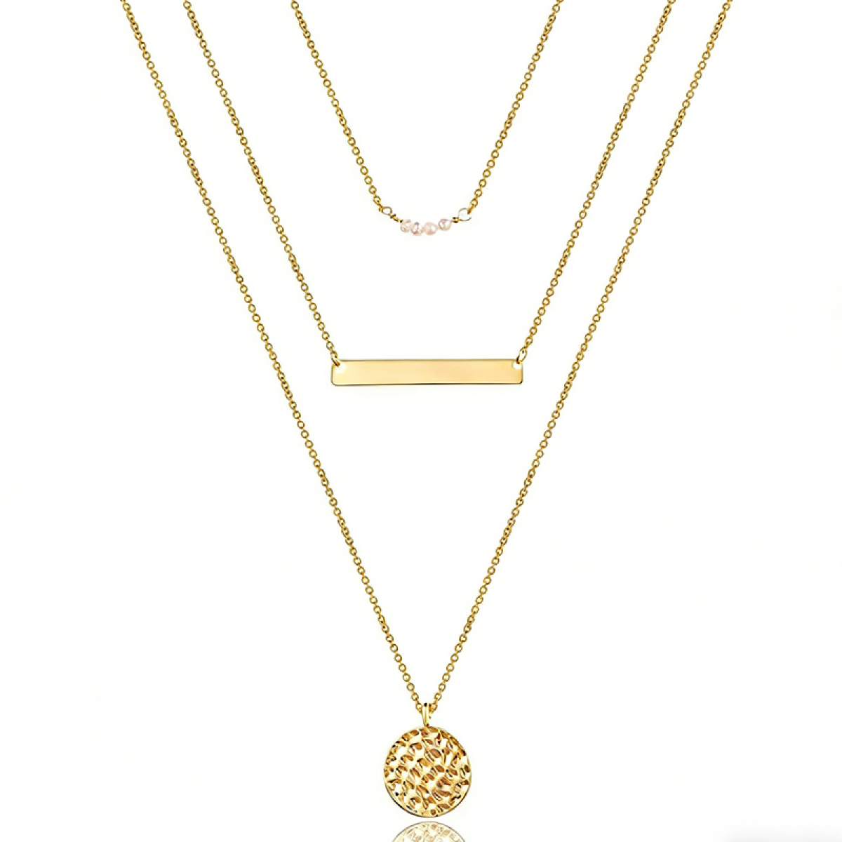 3.PACKAGED: Comes with an elegant gift jewelry bag, pearls beaded necklace, bar necklace, hammered disc pendant necklace. 3 pcs necklace, you can wear one of them or all of them.