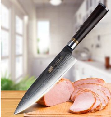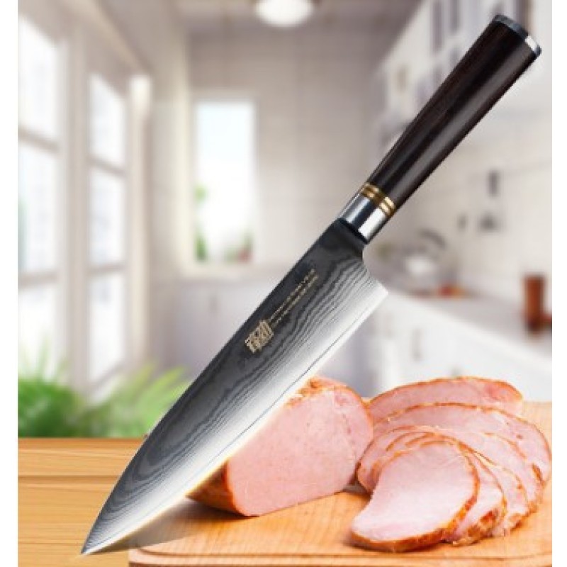 [name]: 8 inch ebony round handle pattern Damascus chef knife