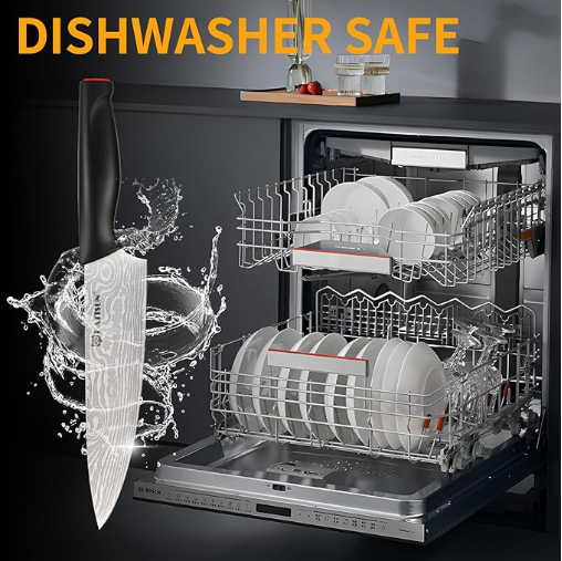 PREMIUM CRAFTSMANSHIP - Knives are crafted with high carbon stainless steel imported from Germany. After Special process treatment improves characteristics of the steel. It showcases intricate patterns, excellent cutting performance, and remarkable durability. Our knives boasts an official Rockwell hardness rating of HRC 53 ± 1, and the 25-degree hand-polished edge on each side