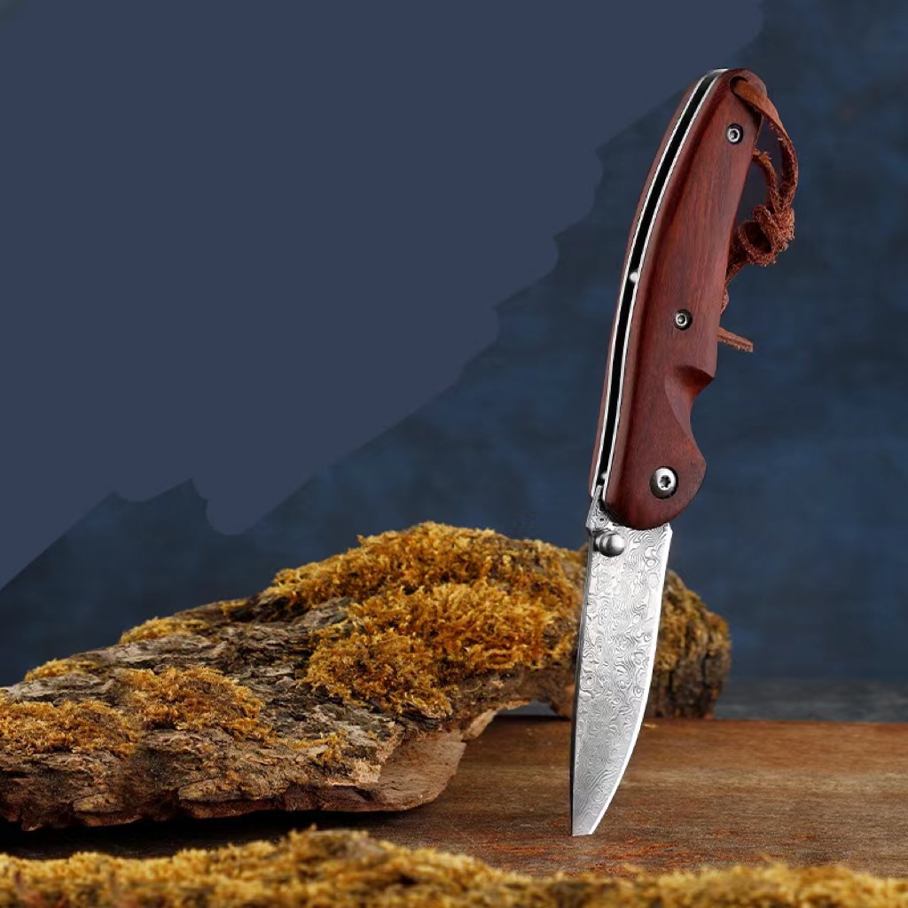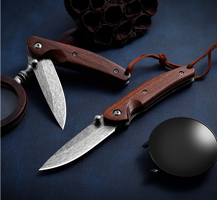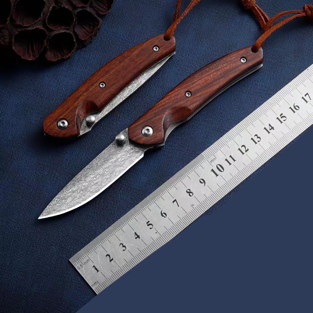 Damascus Steel Mini Carry Self-defense Outdoor Camping Portable Fruit Folding Knife