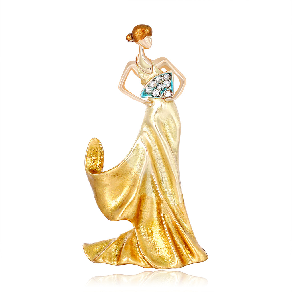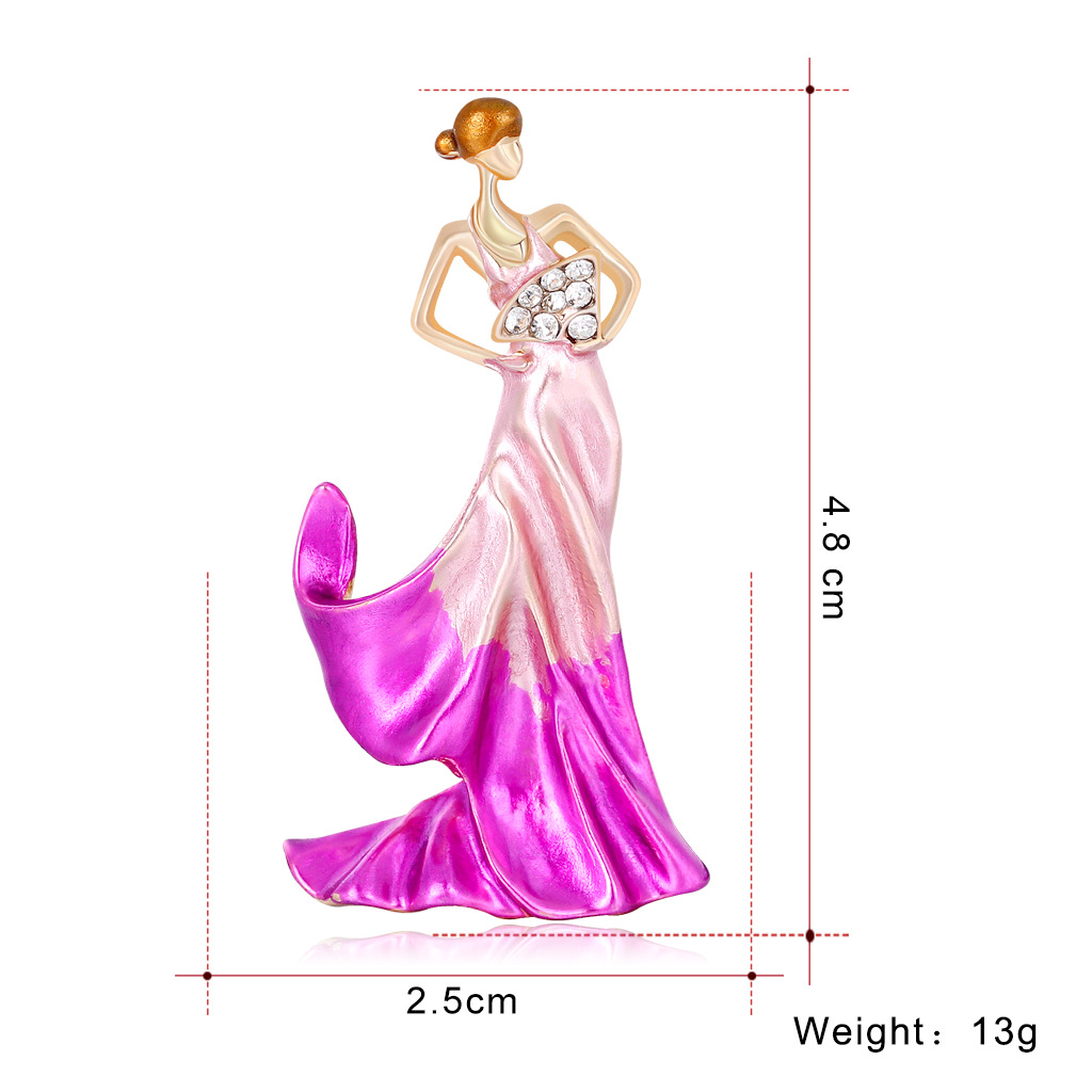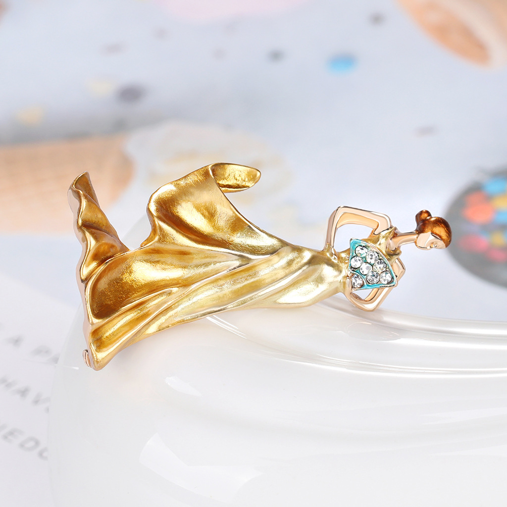 Dancing girl dripping broochStyle: Women'sSize: 2.5*4.8 cmWeight: 13 gMaterial: AlloyTreatment process: electroplating