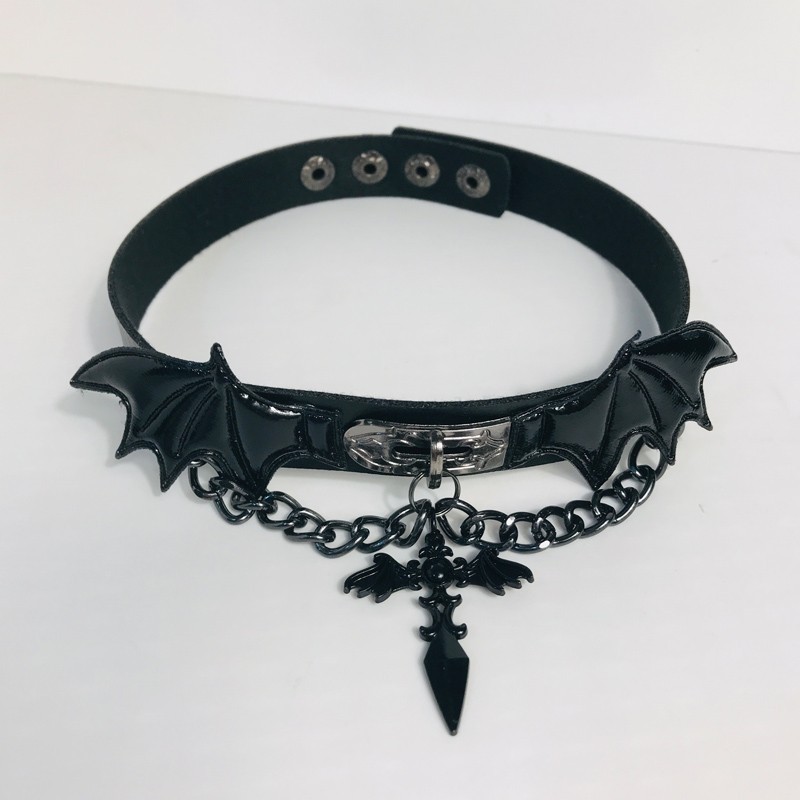 Dark Cross Devil Wings Choker Leg Ring Leather Necklace Bold Girl Punk Style