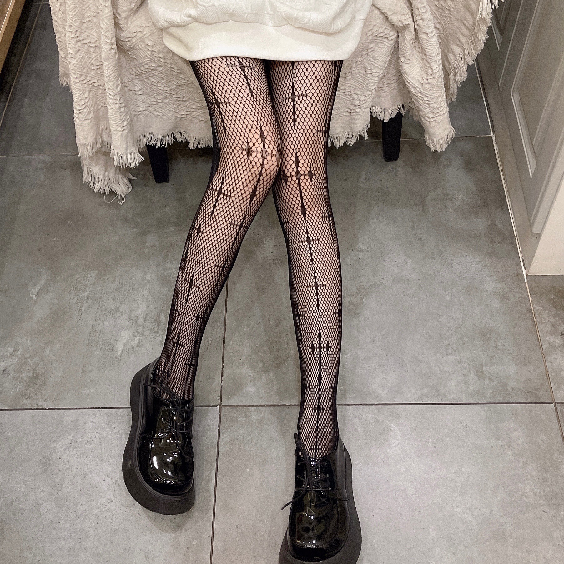 Dark Gothic Lolita Cross Fishnet Stockings Pantyhose