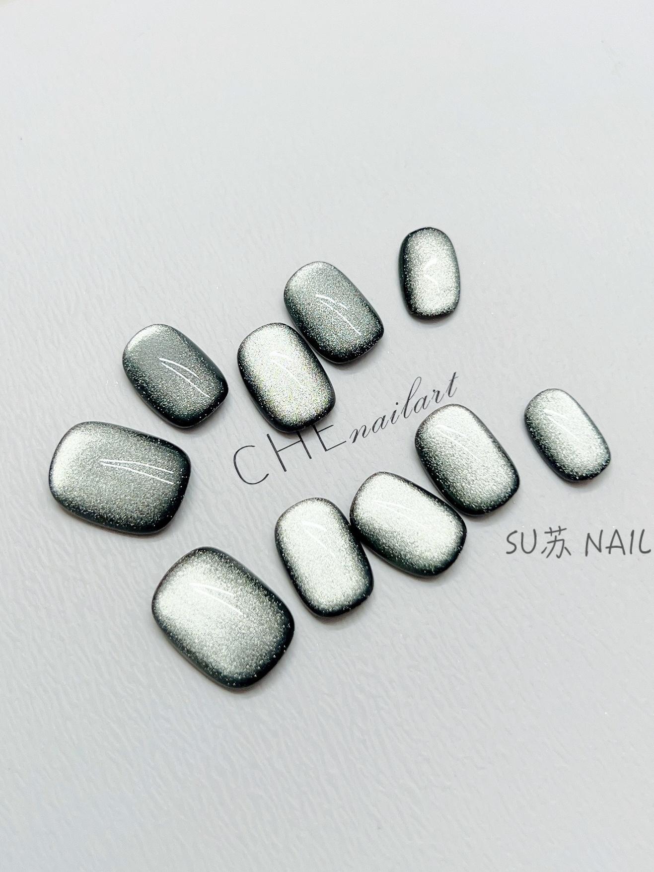Dark Green Cat Eye Nail Beauty UV Short Square Circle