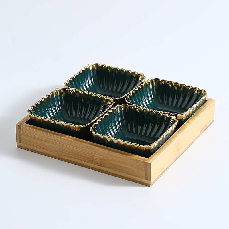 Material: Ceramic Applicable people: adultsPattern: Gold-plated dark greenStyle: simpleShape: square