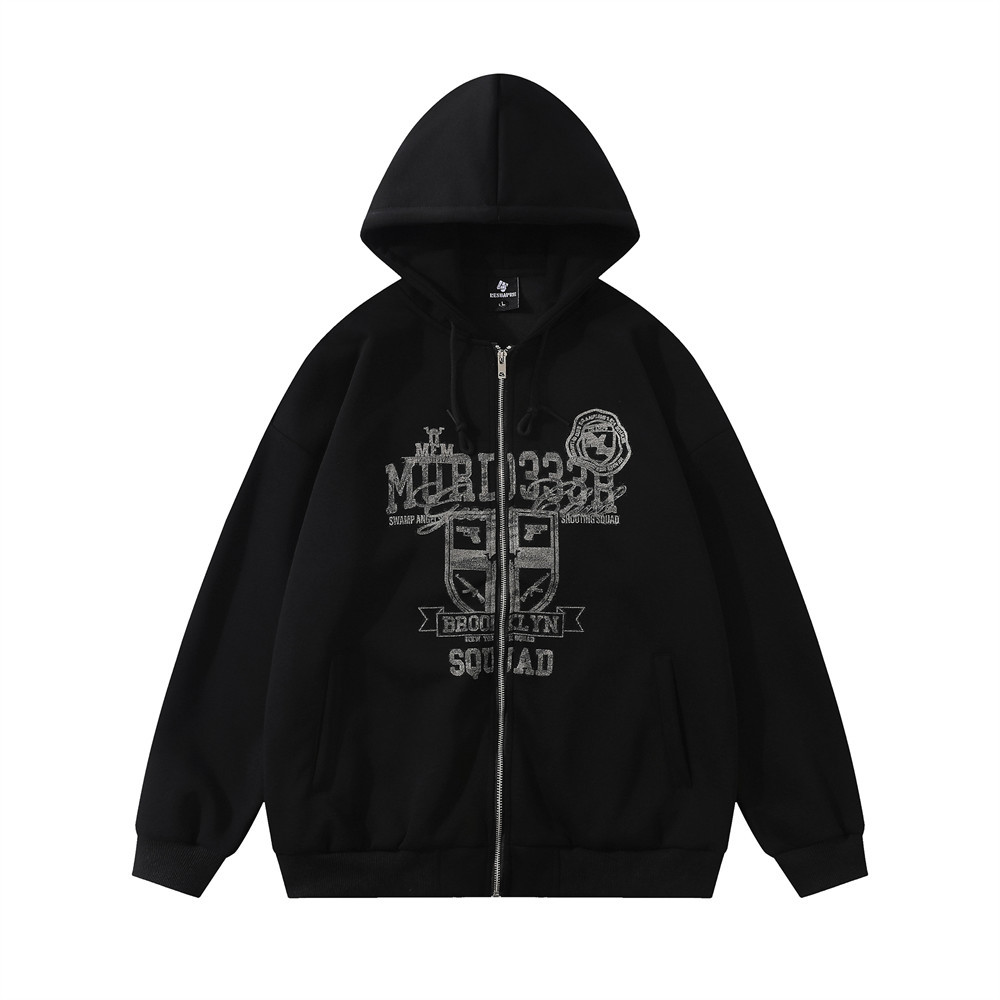 Dark High Street Letter Printing Hooded Loose Sweater Men
