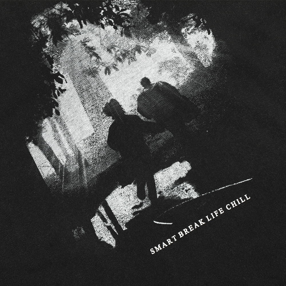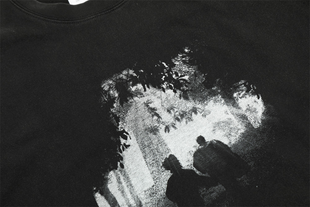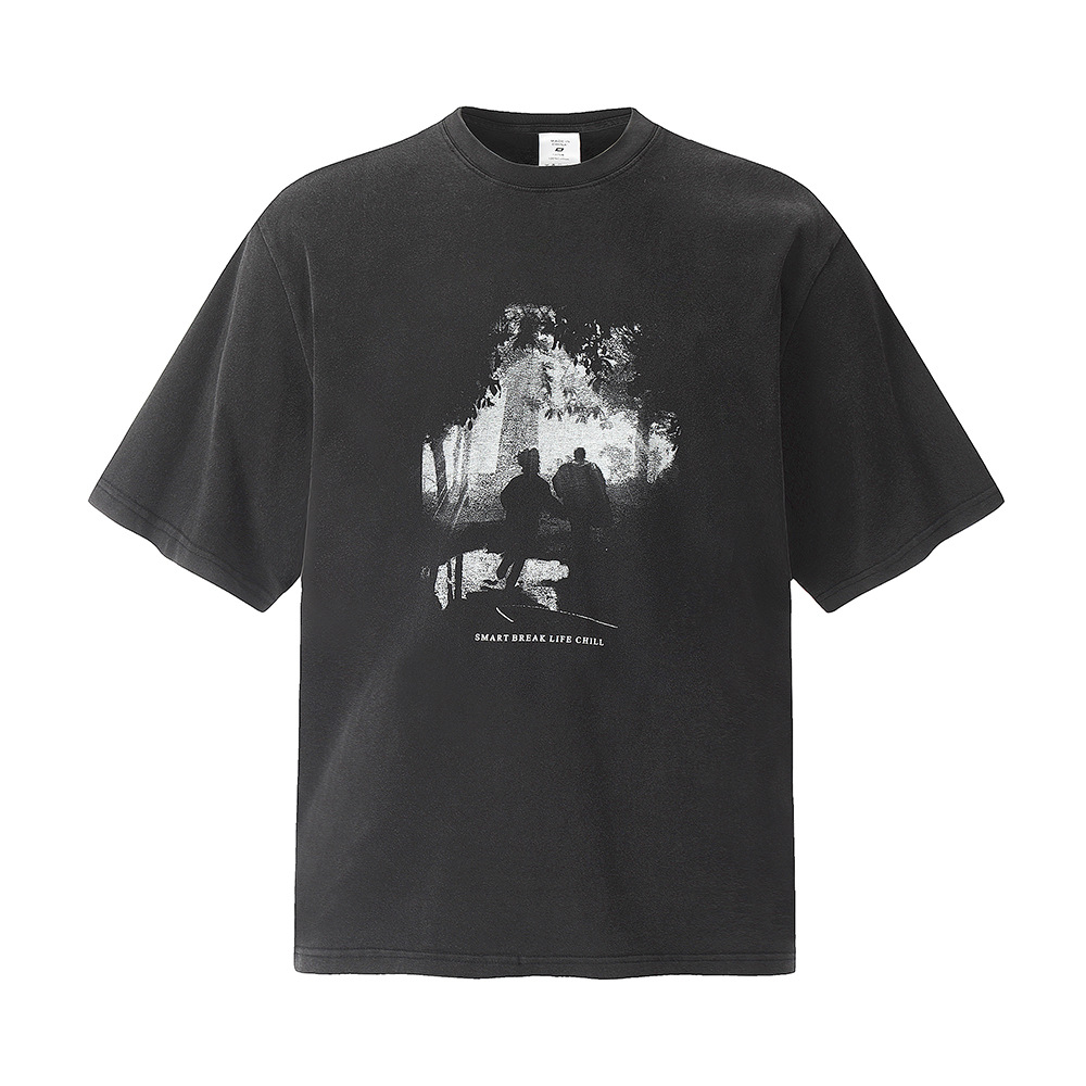 Dark Printed Washed Short-sleeved T-shirt For Men