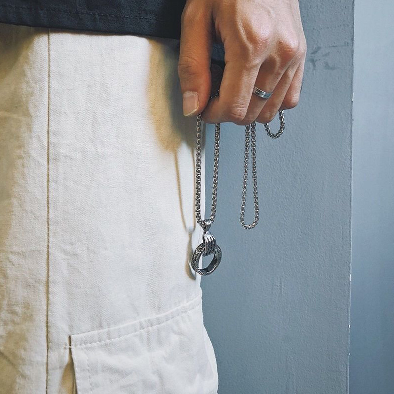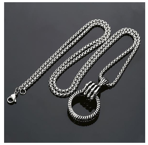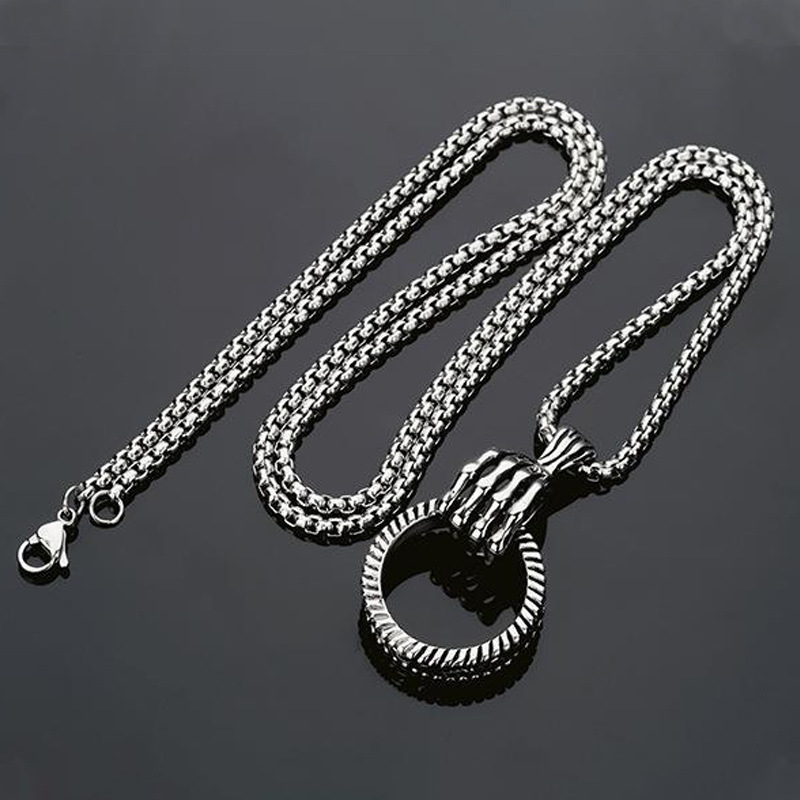 Color: [Skull Claw Ring Necklace] Titanium Steel Pearl Chain + Alloy Pendant [Chain Length Approximately 70 cm]