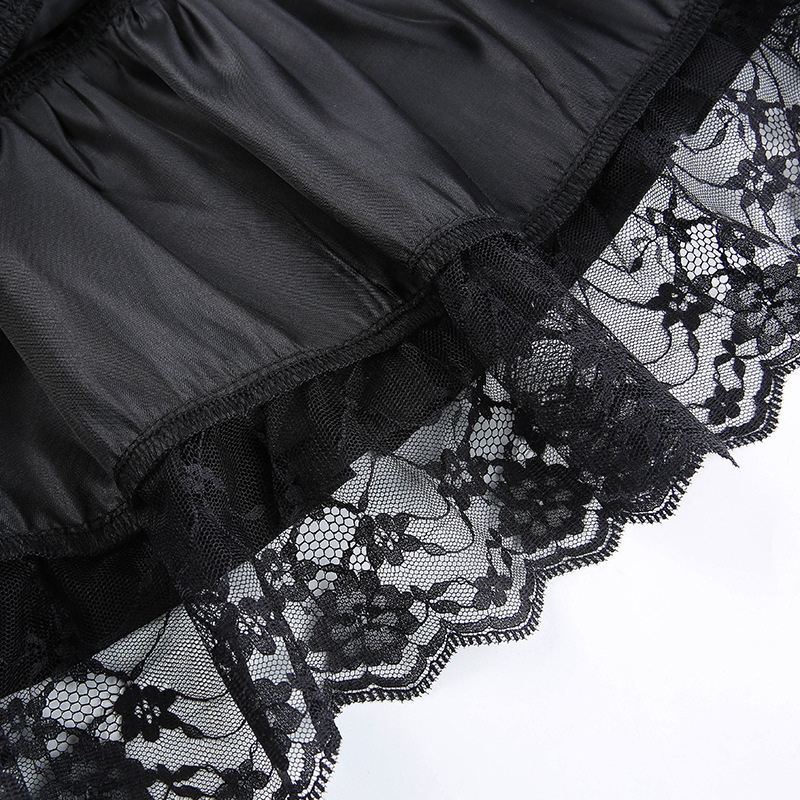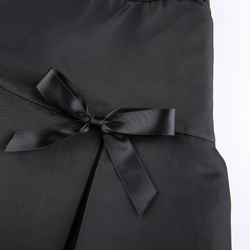 Dark Street Style Lace Stitching Bow Pleated Skirt
