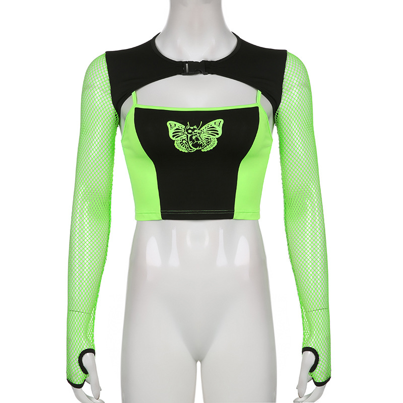 Dark Trendy Cool Mesh Splicing Sling Vest Blouse