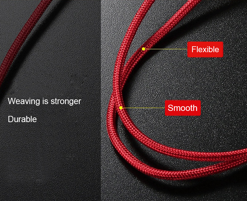 4. The wire is a four core wire. There are two charging cores and two data transmission cores respectively. There are 122 pure copper cores charged 90 * 0.08 * 2C + 32 * 0.08 * 2C for data transmission. The single copper core adopts the high current standard, with a diameter of 0.08mm (tinned copper). It is a real fast charging data wire.