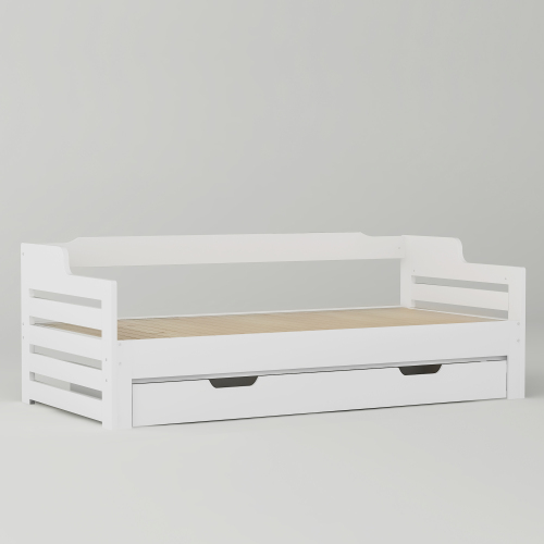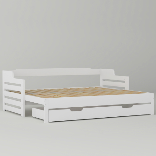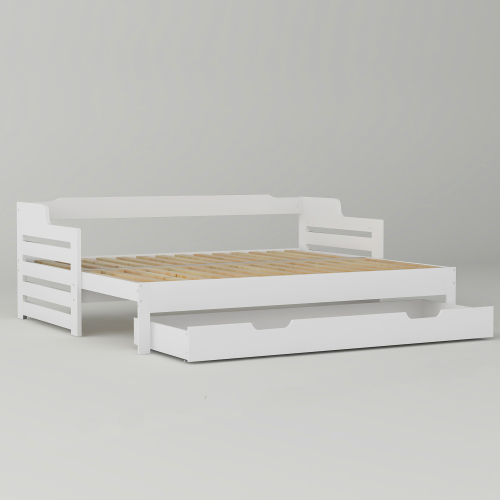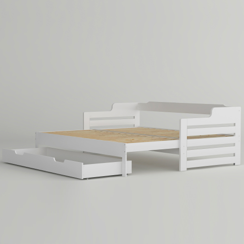 Product Name:Daybed, Trundle and Drawer, Cabin Bed, SIngle Guest Bed Sofa Bed, Pull out Trundle and Storage Drawer for Living Room and Bedroom - (3') 90 x190 cm - White