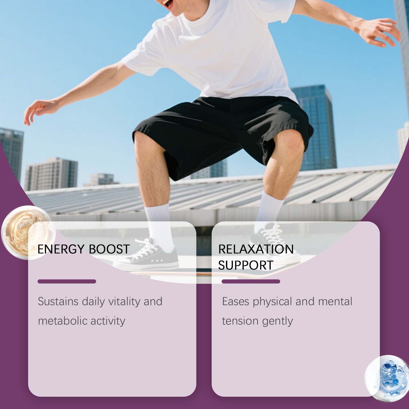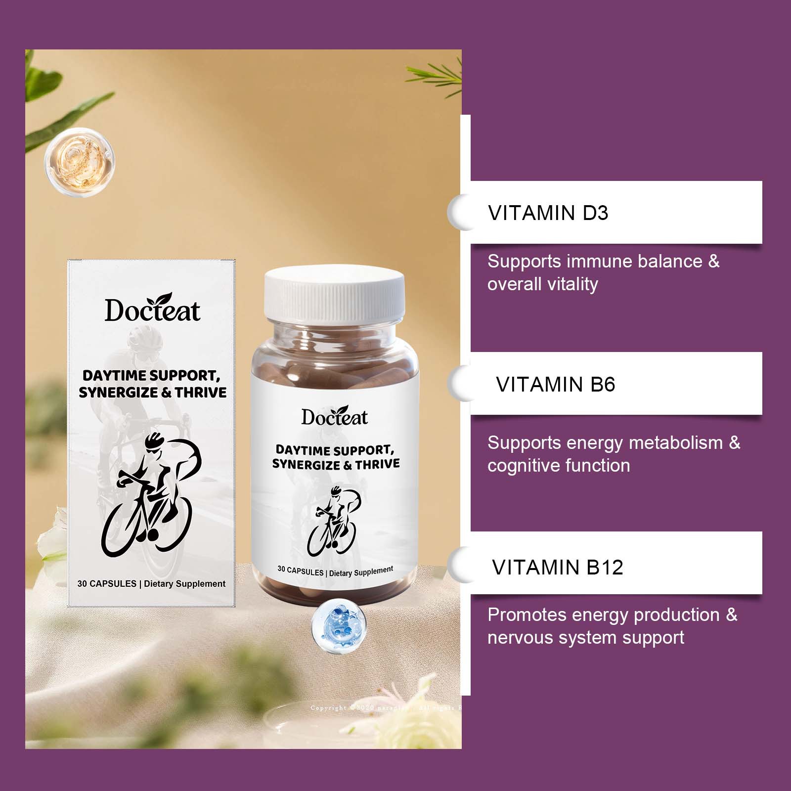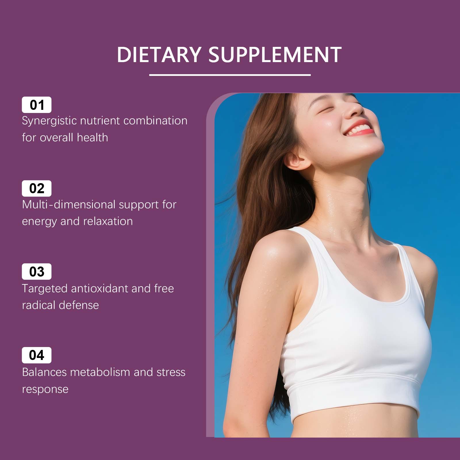 Ingredients: vitamin D3, vitamin B6, vitamin B12, selenium, turmeric (Curcuma longa), withania somnifera extract, coenzyme Q10, theanine acid.