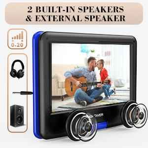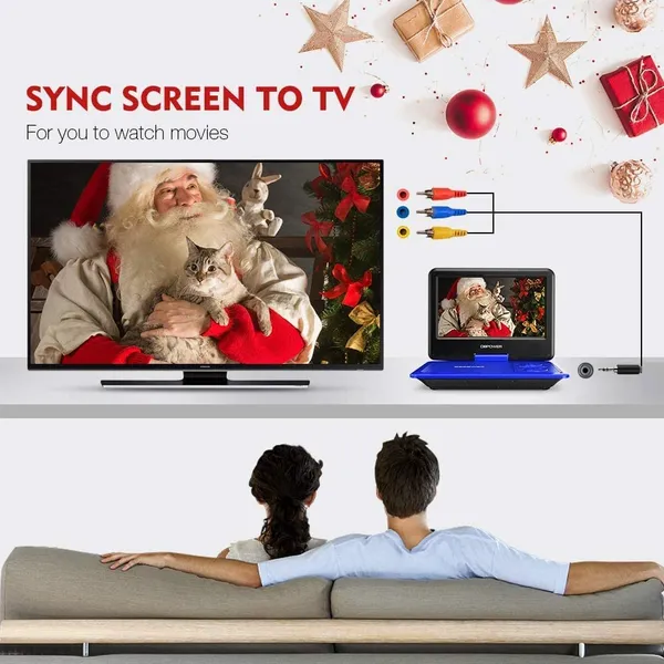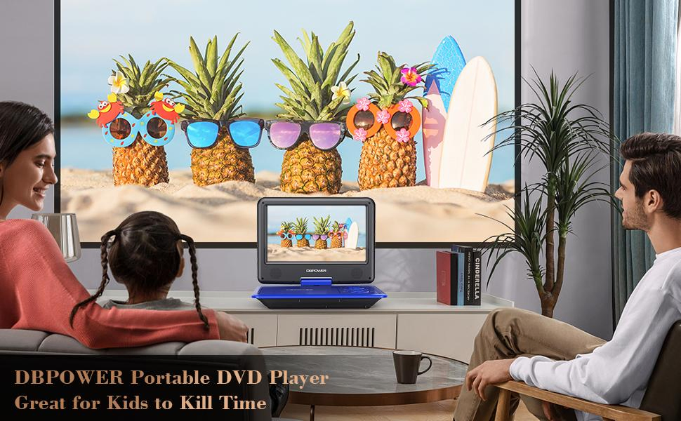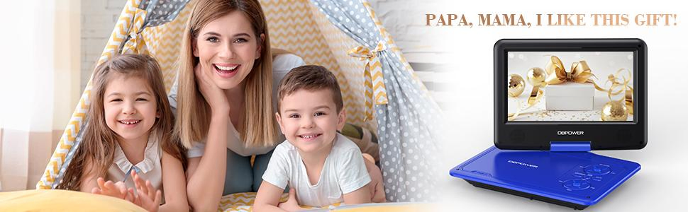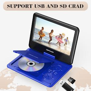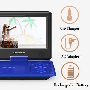 DBPOWER 11.5" Portable DVD Player, 5-Hour Built-in Rechargeable Battery, With 9" Swivel Screen, Support CD/DVD/SD Card/USB, With Remote Control, 1.8M Car Charger And Power Adaptor (Blue)