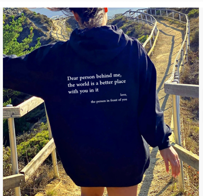 Dear Person Behind Me,the World Is A Better Place,with You In It,love,the Person In Front Of You,Sweatshirt Letter Slogan Printed Kangaroo Pocket Drawstring