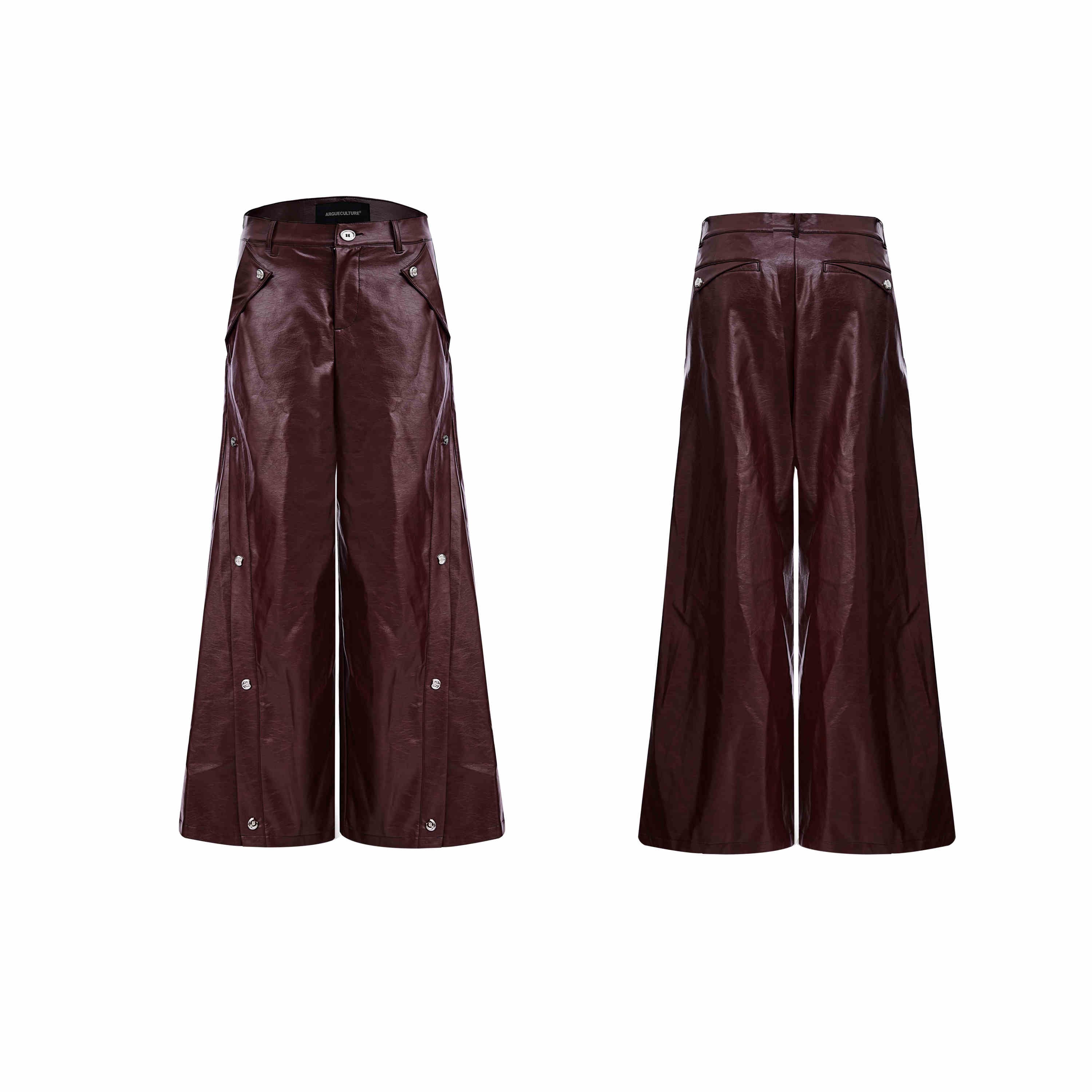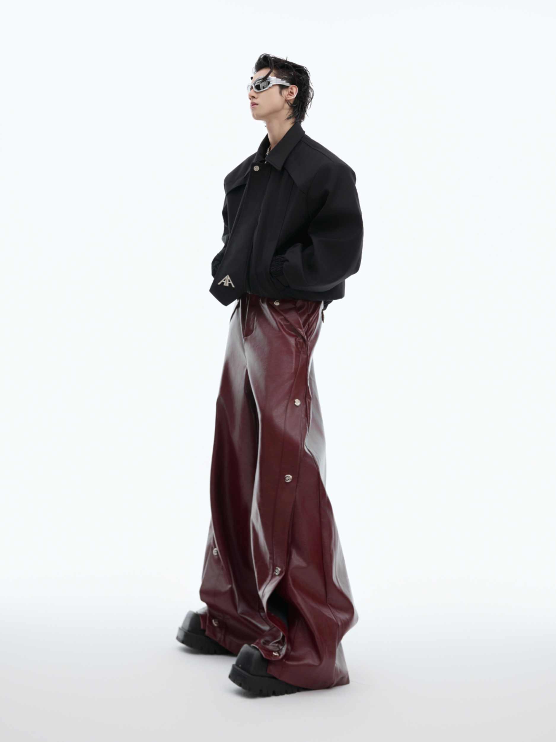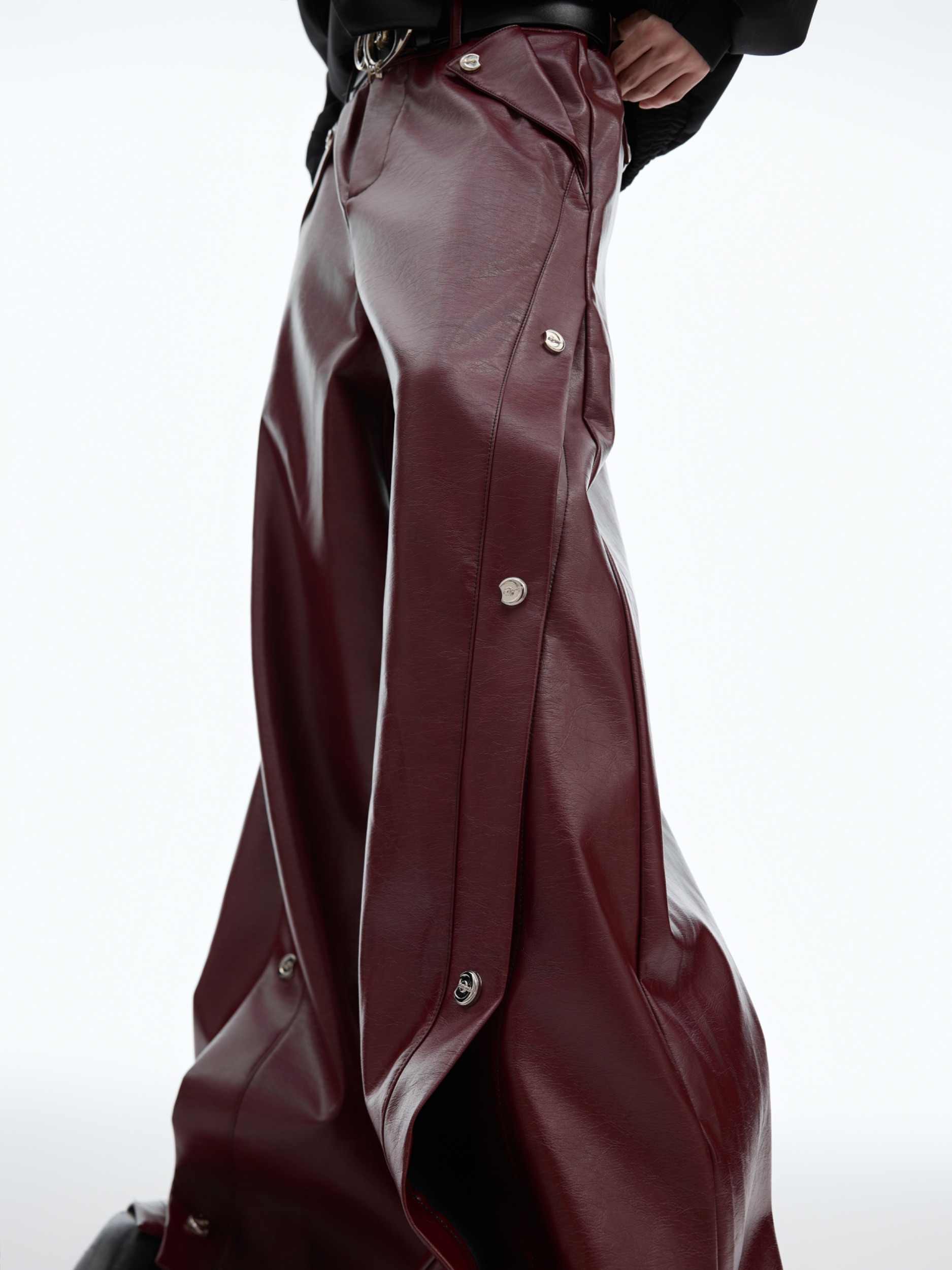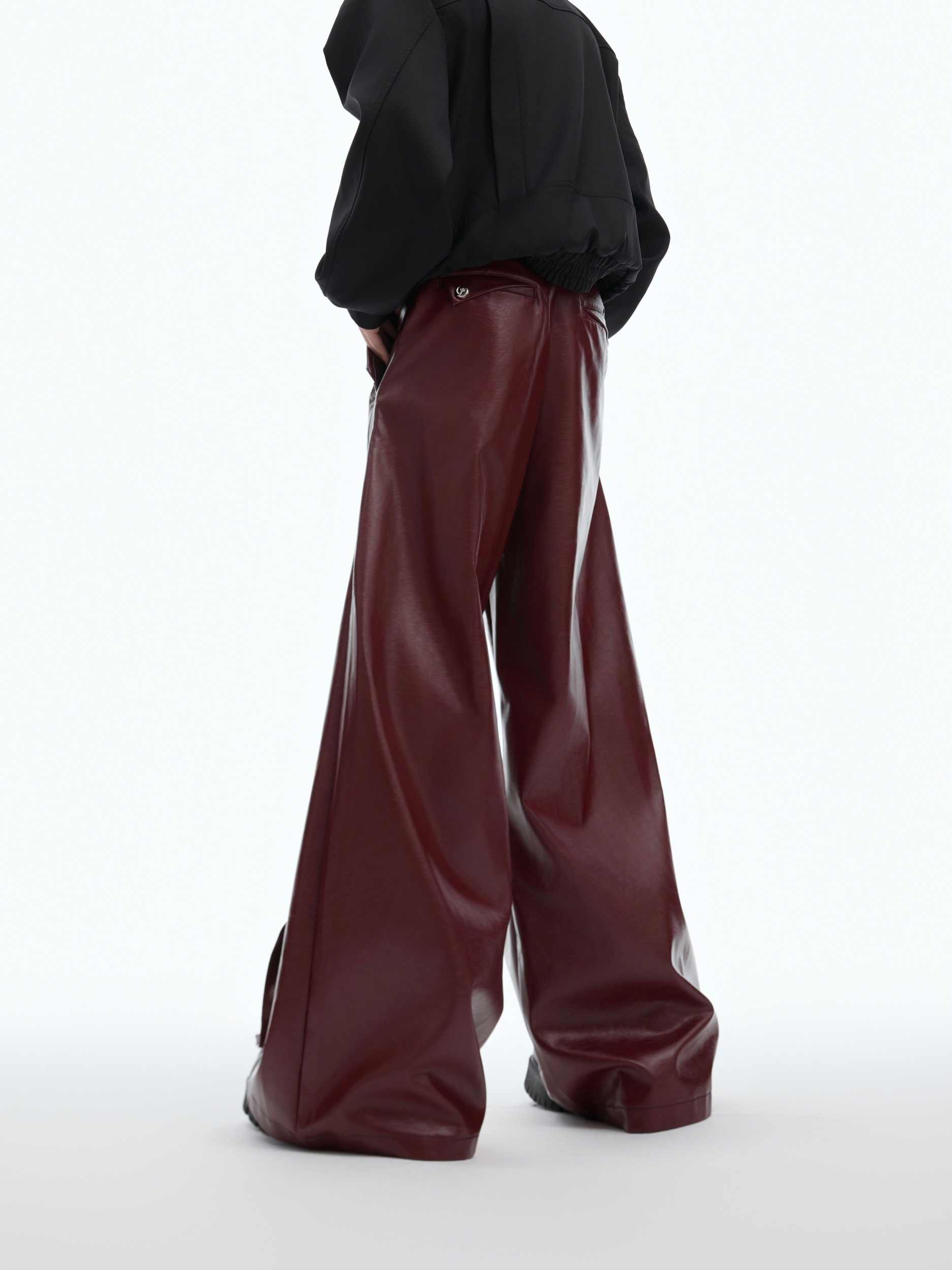 Deconstructing Matte Red Pleated Wide-leg Pants
