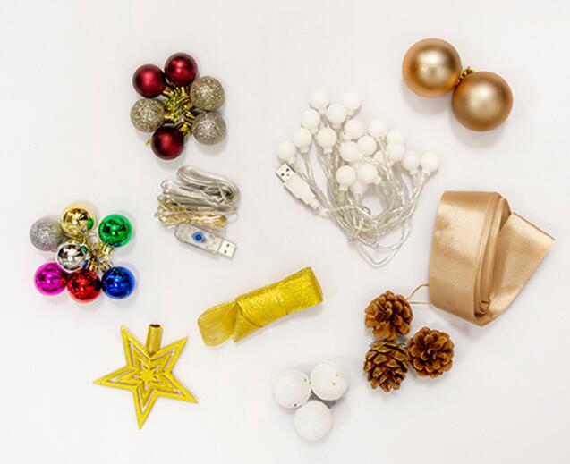Christmas tree ornament +Decorative ball+five pointed star+ribbon+LED light strip