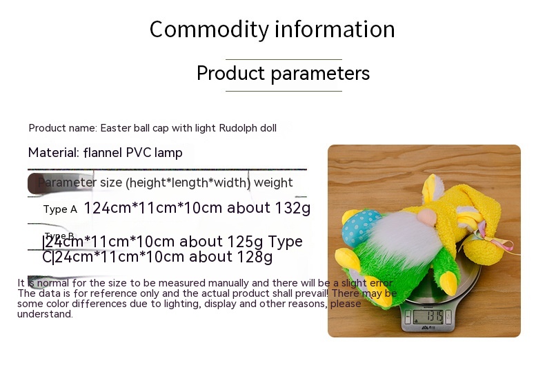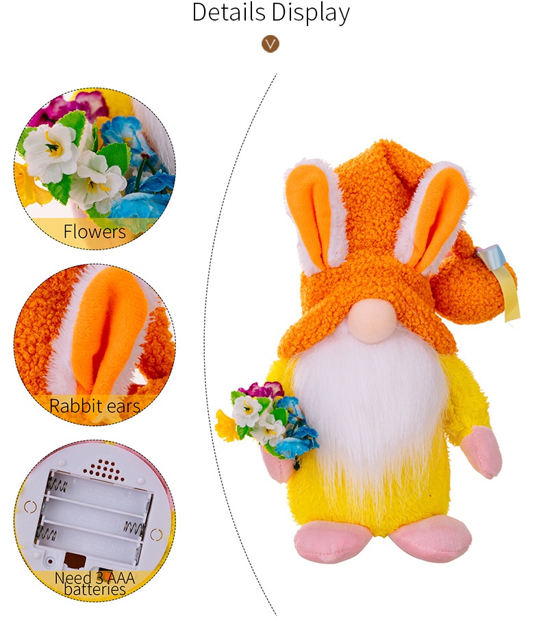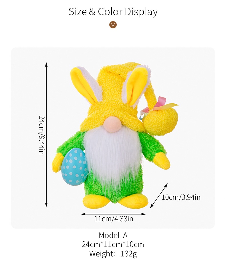 Size: Easter doll with lights-yellow hooded, Easter doll with lights-orange hat, Easter doll with lights-green hats