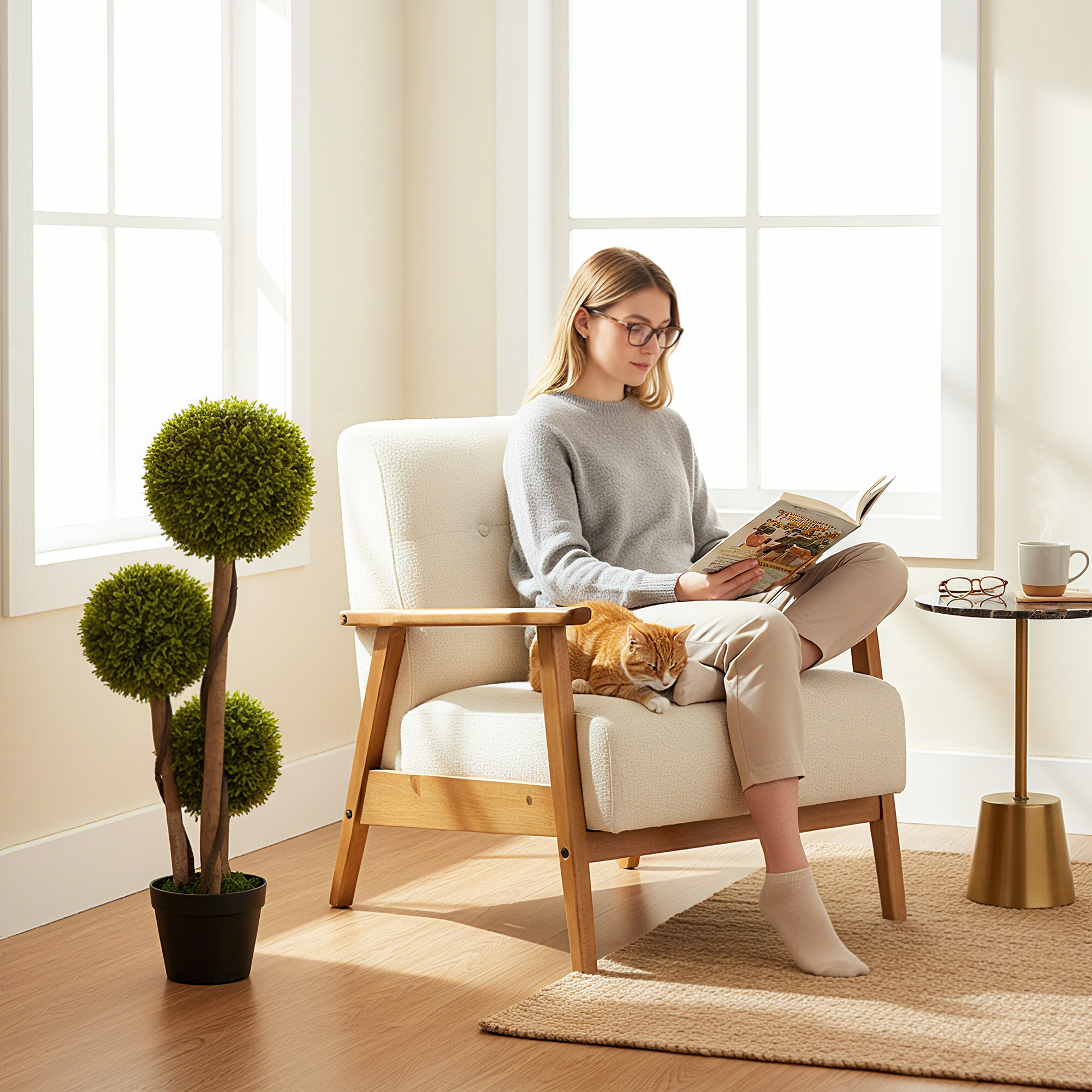 Fake plants are great for those who want something vibrant without the constant upkeep, all year round. This set of two artificial boxwood trees is exactly that. Each features three bush balls for a cool look. Made from plastic in a vibrant green with a natural texture for a realistic effect. They come with cement-filled pots to keep them steady, topped with faux grass. Use indoors or outdoors — the choice is yours.