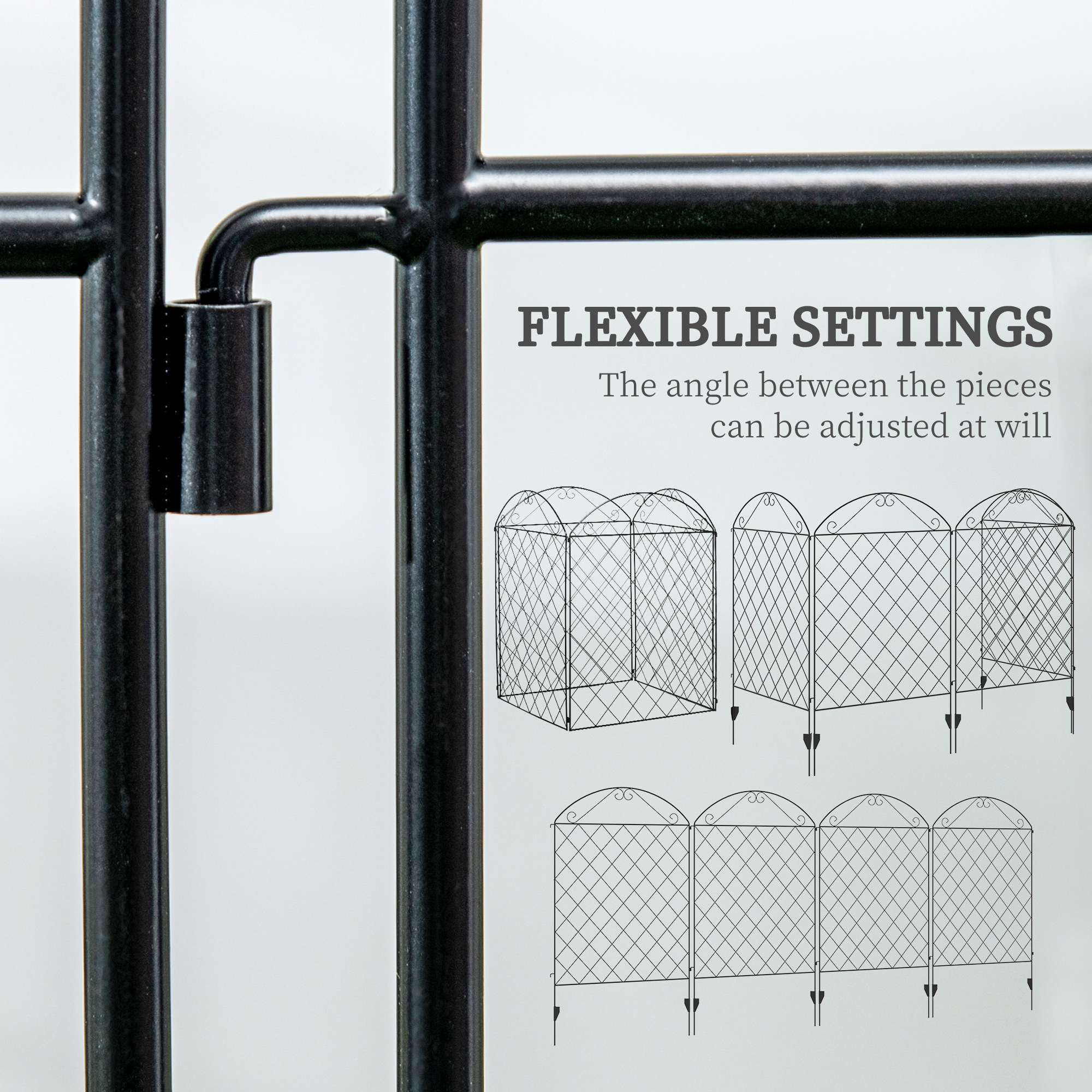 A beautiful and practical fence which can easily be shaped to suit you: this piece is the perfect entrance to your home! 7m long, each panel can be flexed to a different position, making it great for obscure shaped areas. Made from metal for a strong structure, the powder coating offers extra protection and strength. The inner gridding and top swirls create a pretty look.