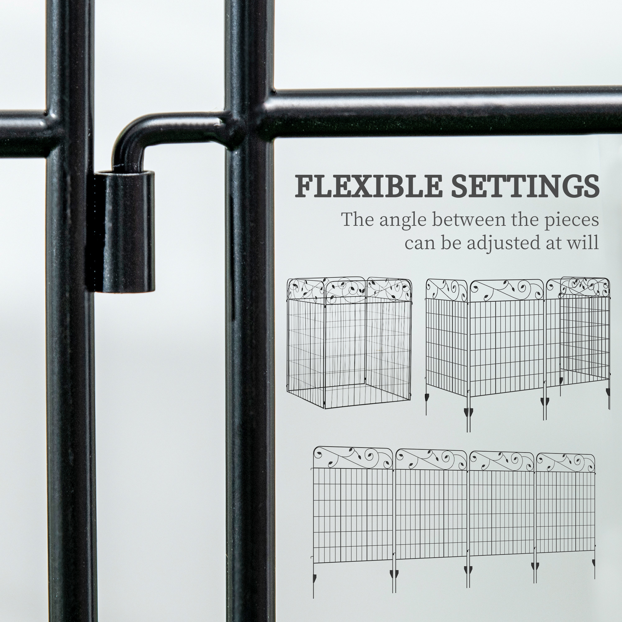 A beautiful and practical fence which can easily be shaped to suit you: this piece is the perfect entrance to your home! 7m long, each panel can be flexed to a different position, making it great for obscure shaped areas. Made from metal for a strong structure, the powder coating offers extra protection and strength. The inner gridding and top floral swirls create a pretty look.