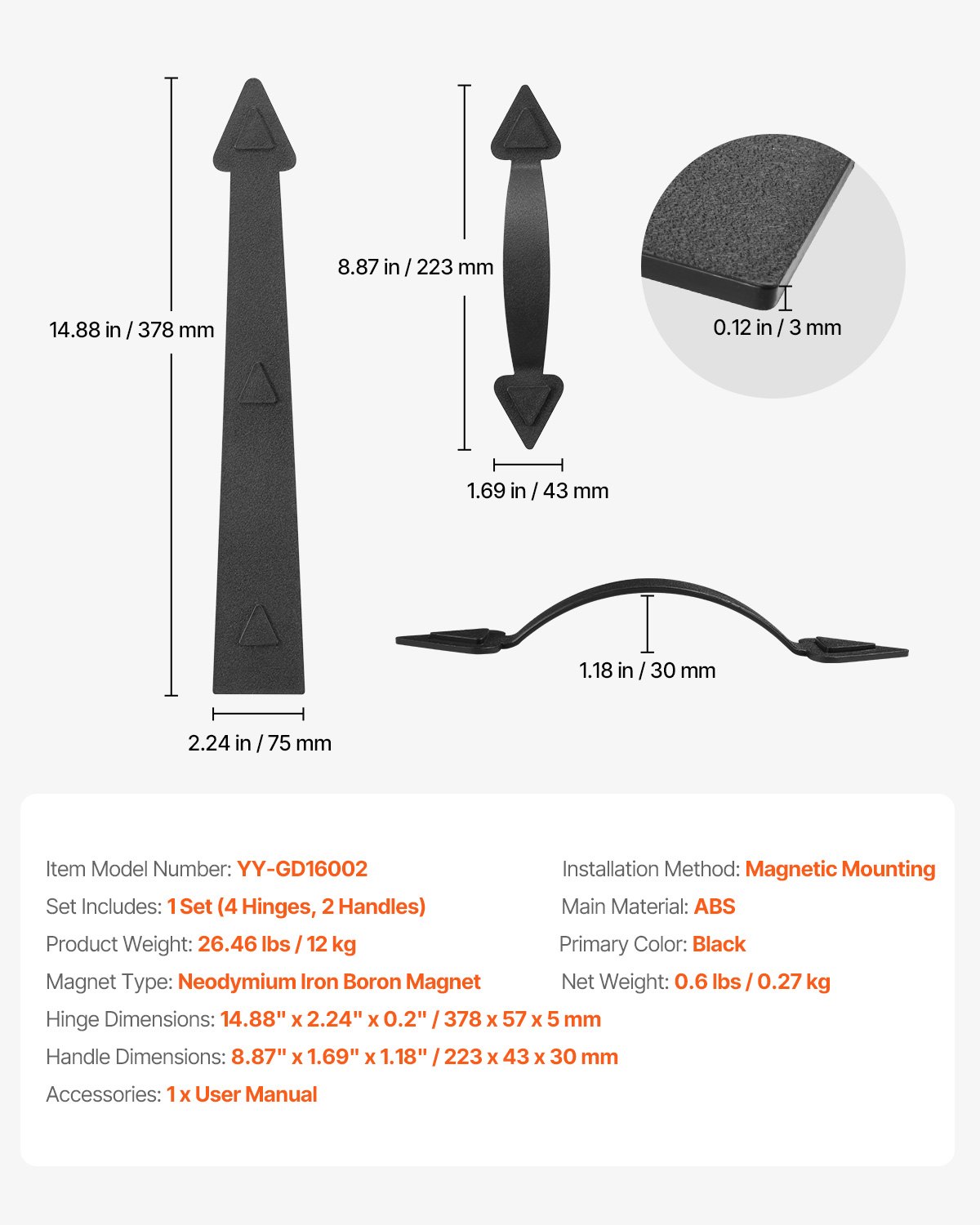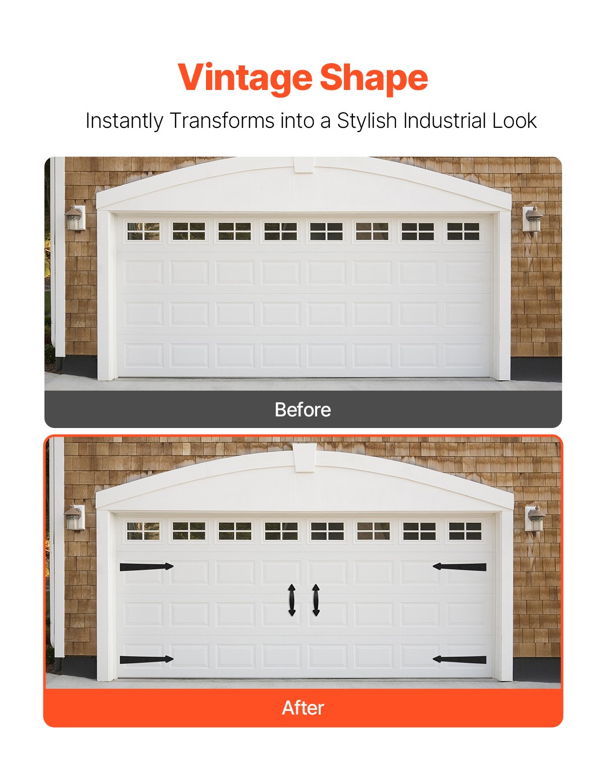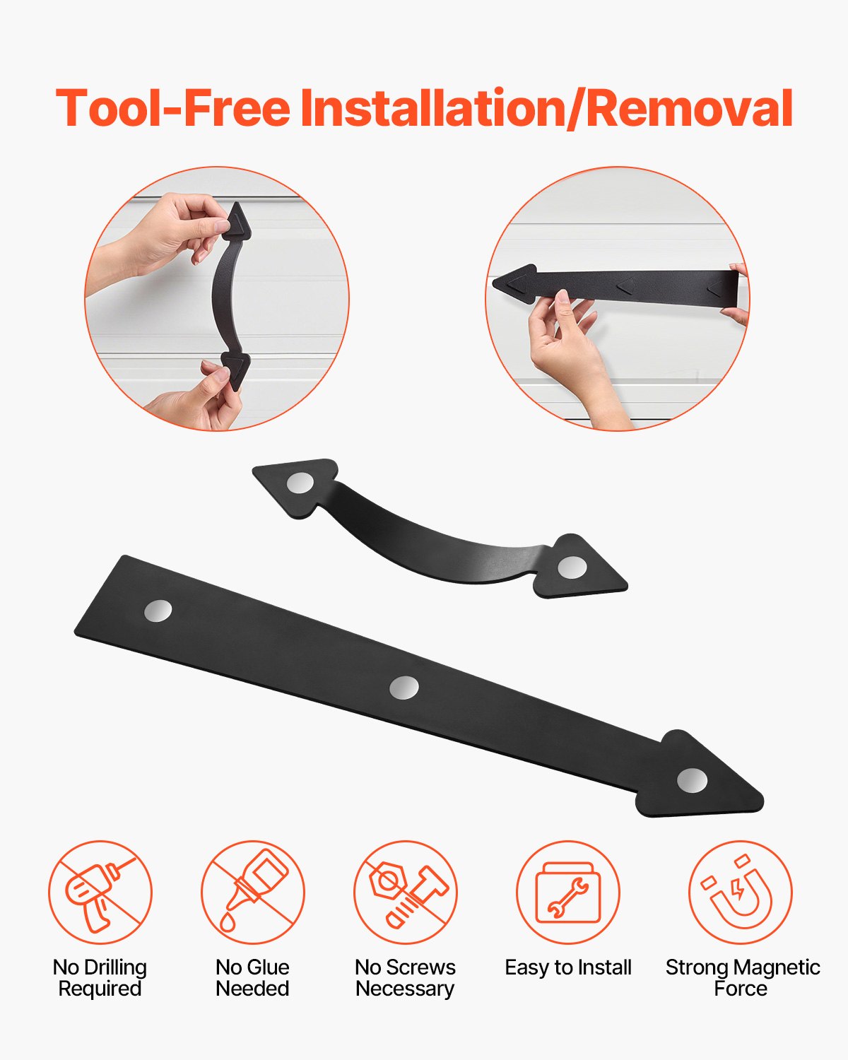 Decorative Magnetic Garage Door Hardware Kit Accents 4 Hinges 2 Handles Black