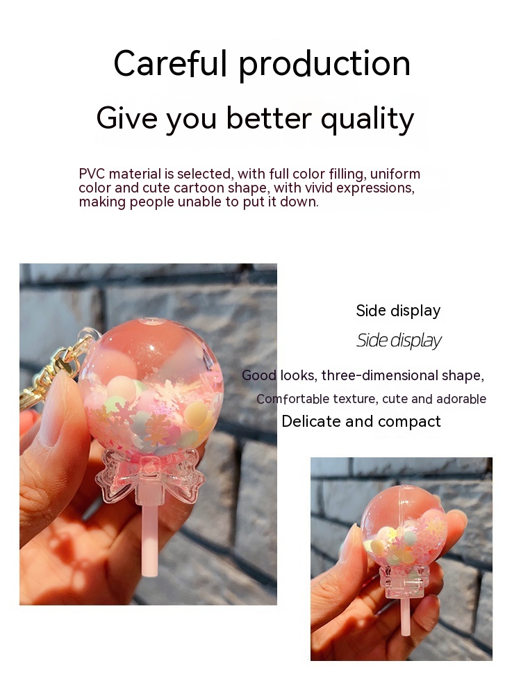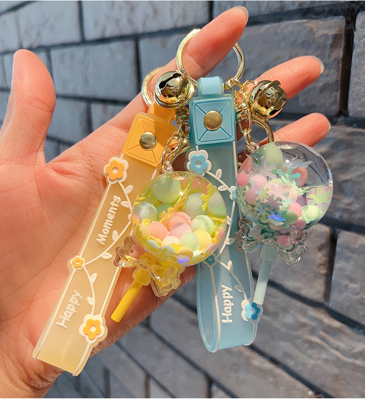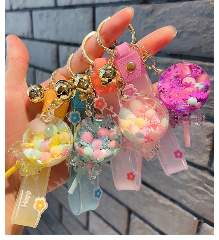 Decorative Pendant Cute Lollipop Bubble Beads Oil Quicksand Drift Bottle Keychain