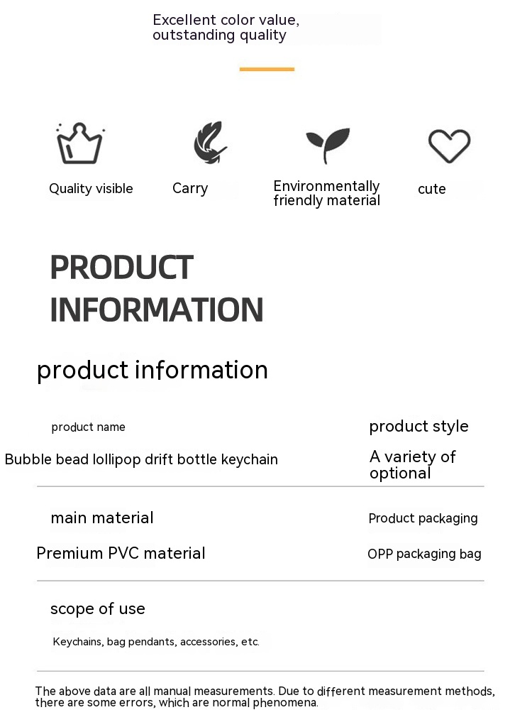Color: blue lollipop bubble beads drift bottle, pink lollipop bubble beads drift bottle, yellow lollipop bubble beads drift bottle, purple lollipop bubble beads drift bottle