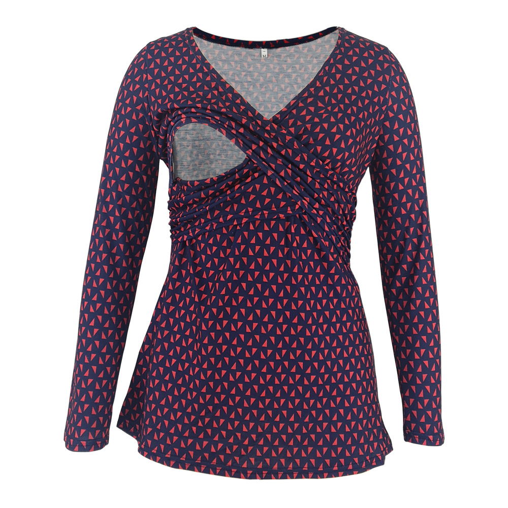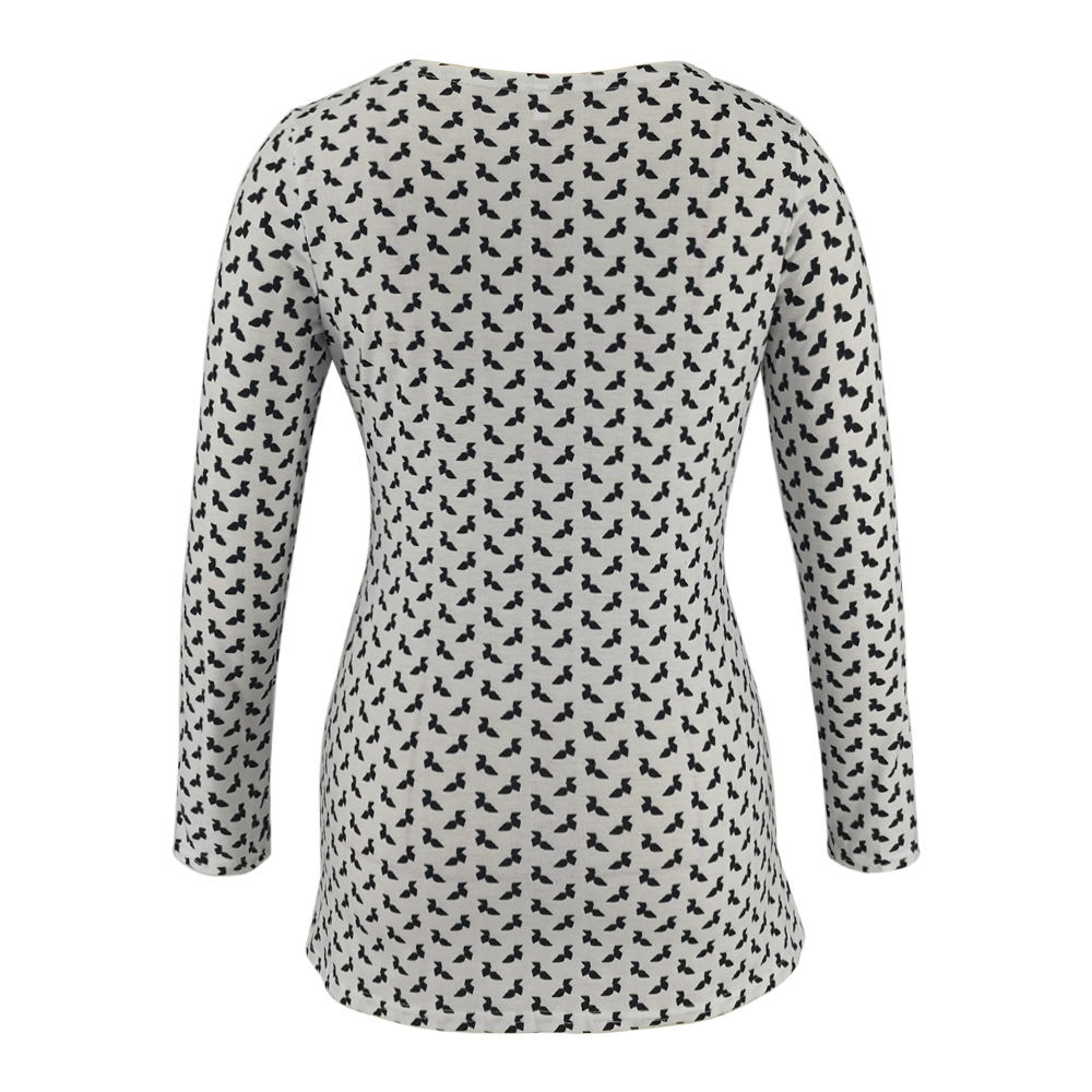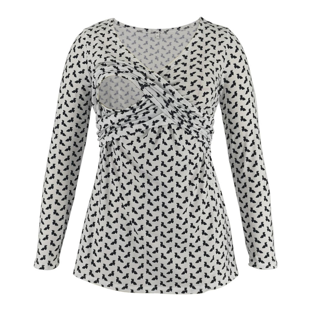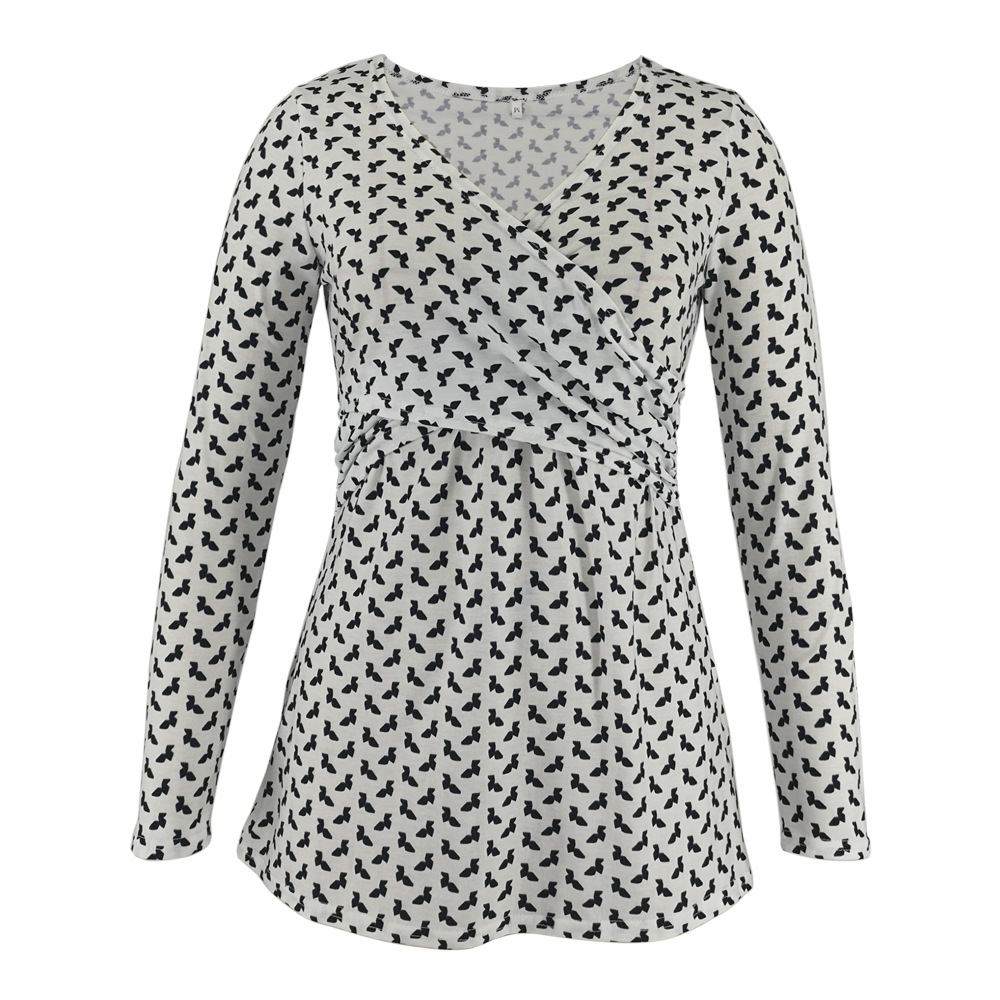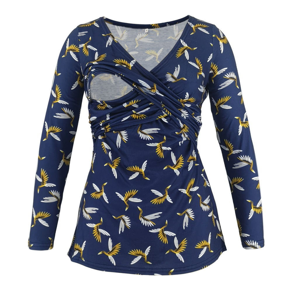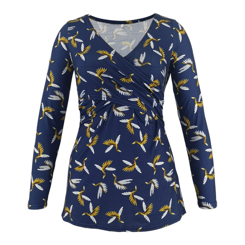 Deep V-neck print long sleeves